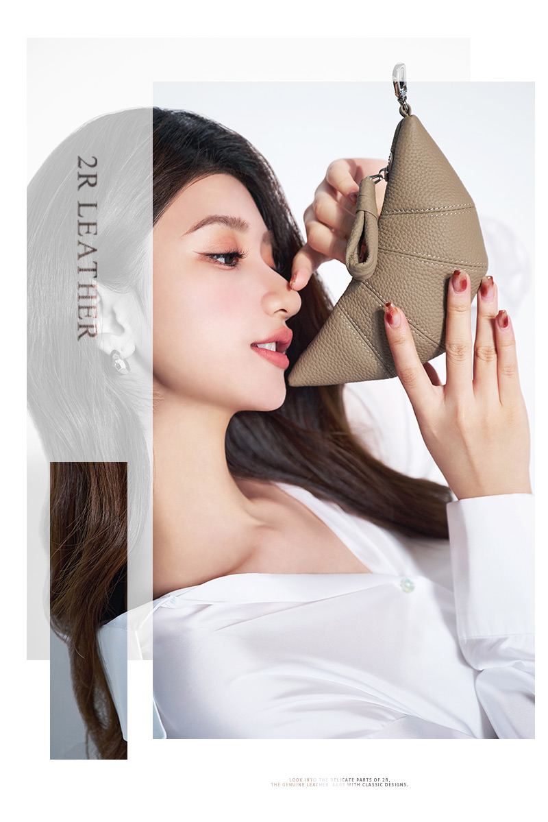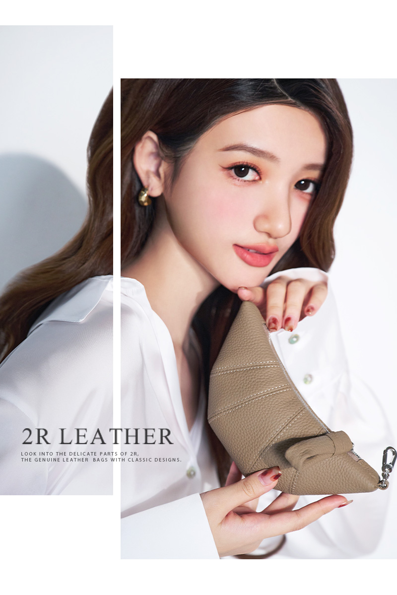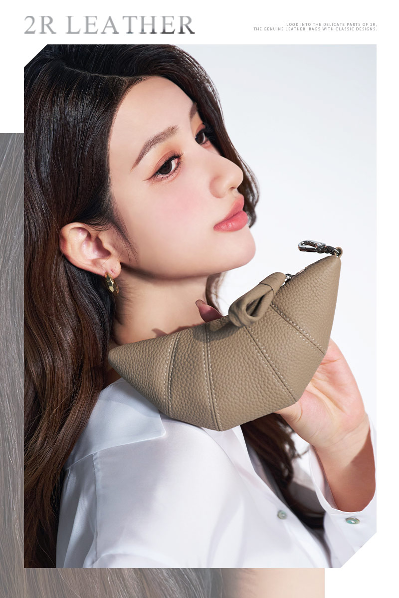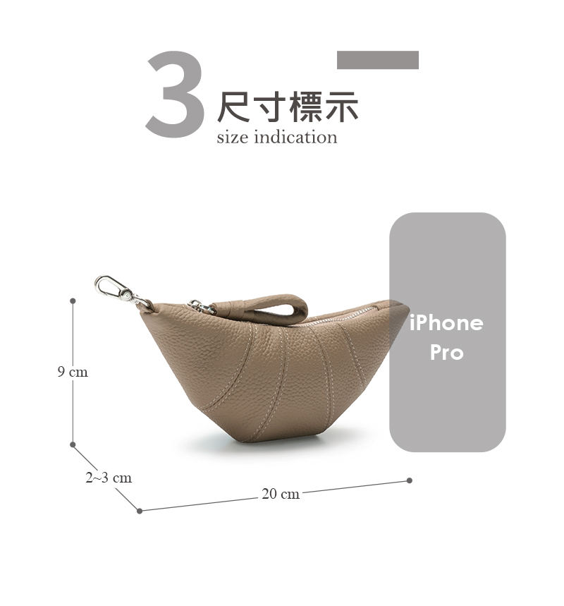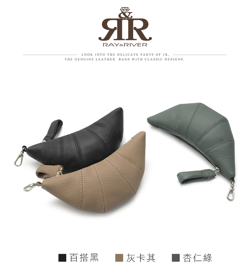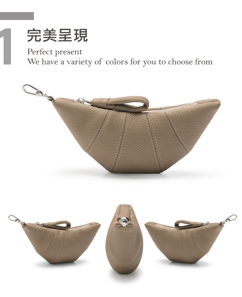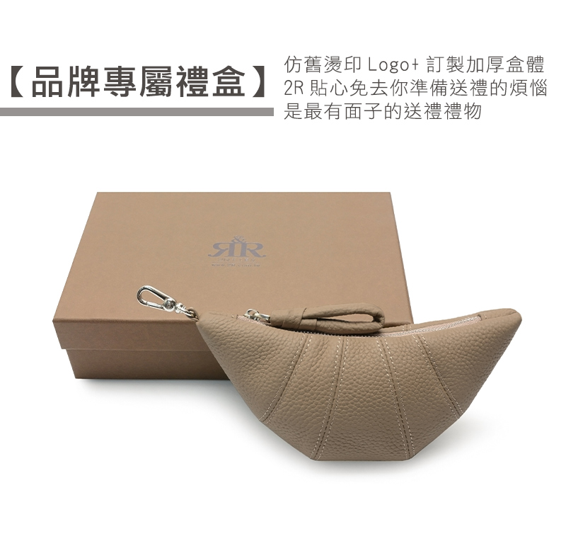 【2R 手工真皮】雙11 韓潮 Croissant 牛皮造型隨身零錢可頌包 灰卡其(真皮 零錢包 收納包 掛包)