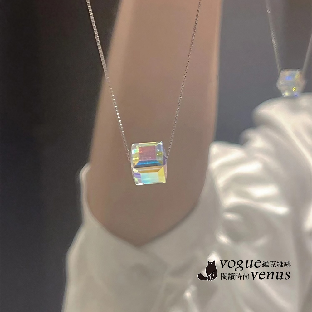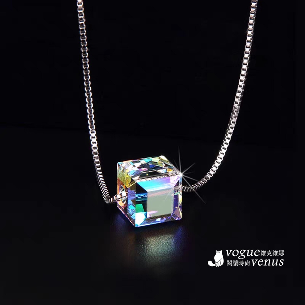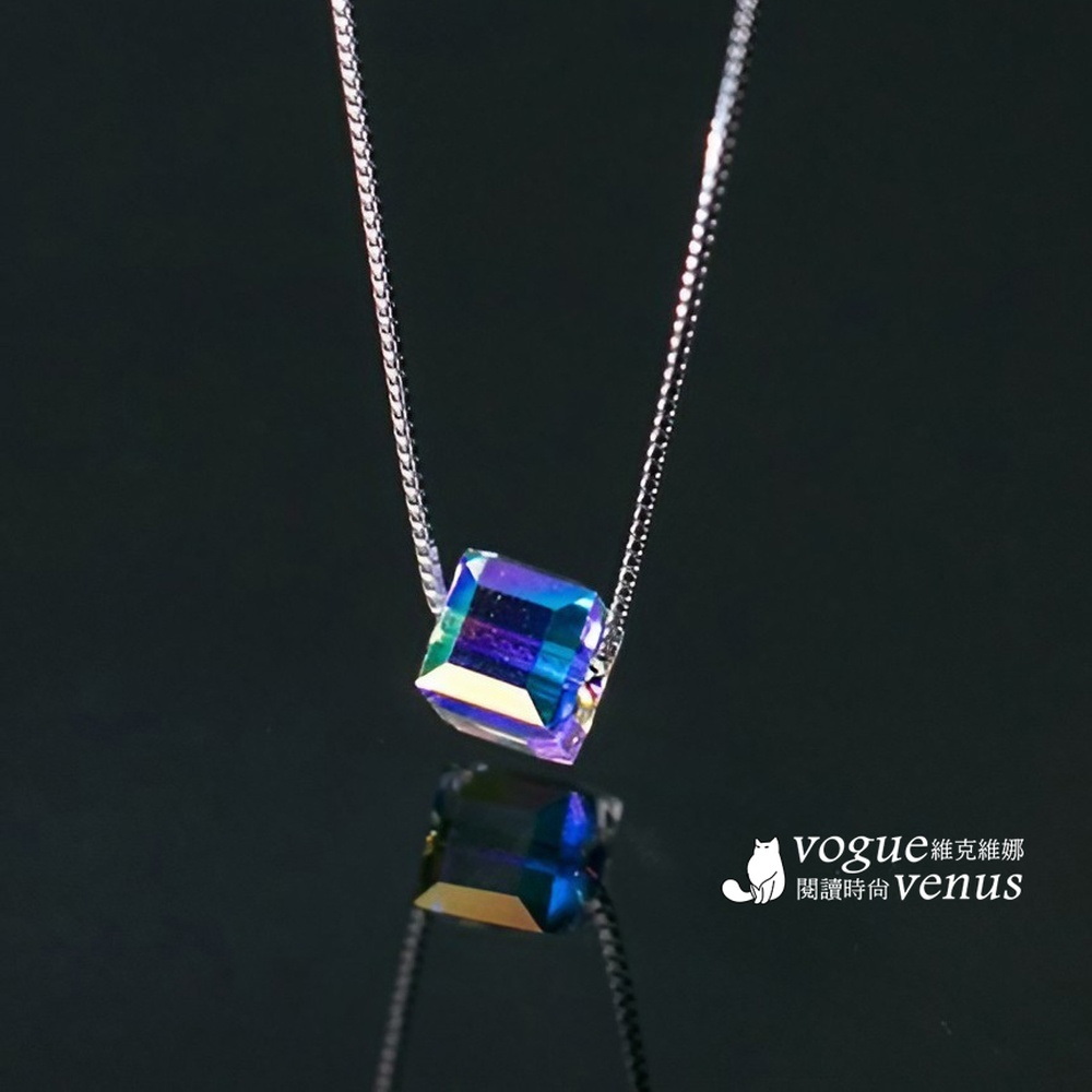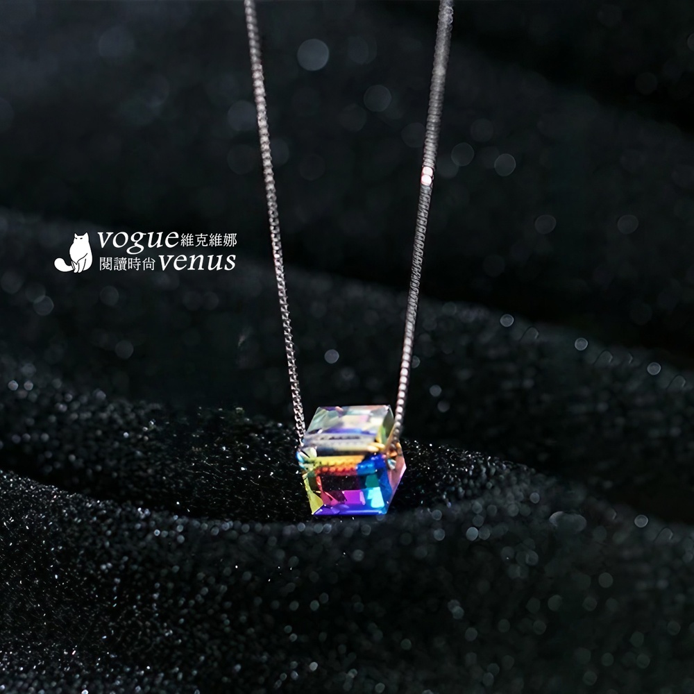 【維克維娜】幻彩方塊水晶925純銀項鍊