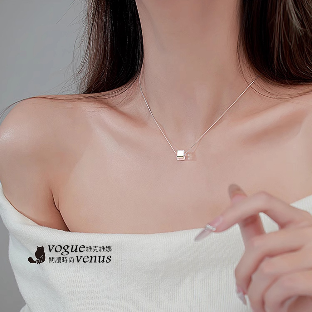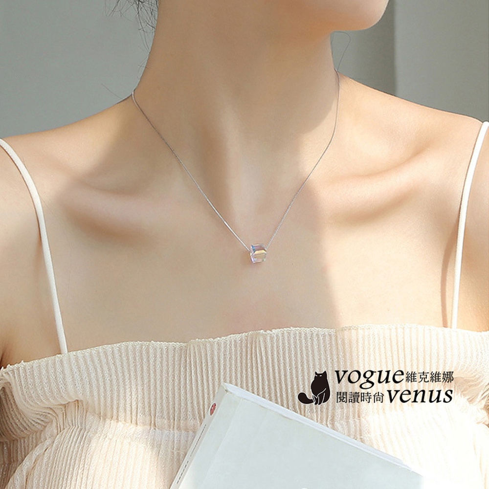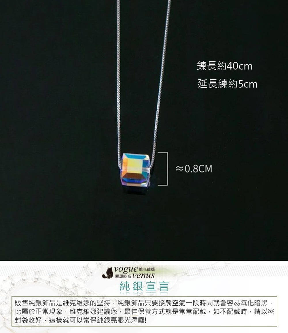 【維克維娜】幻彩方塊水晶925純銀項鍊