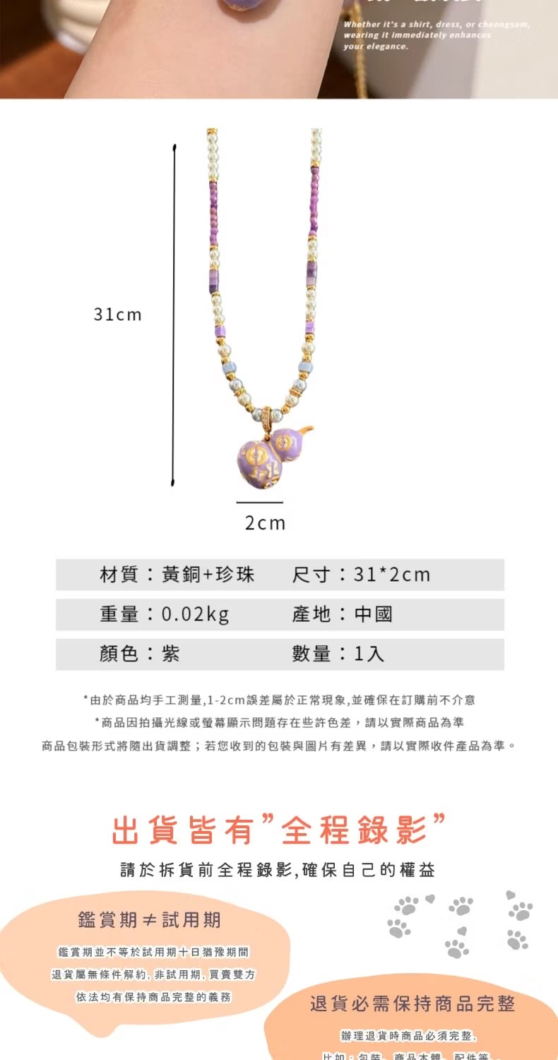 【紫氣東來】滴油法琅葫蘆串珠項鍊(珍珠 葫蘆吊墜 古風 小眾設計 新中式 高級 鎖骨鍊 古著 男女)