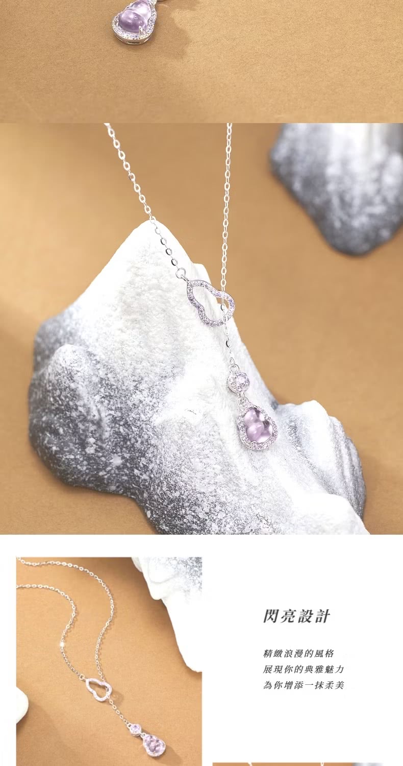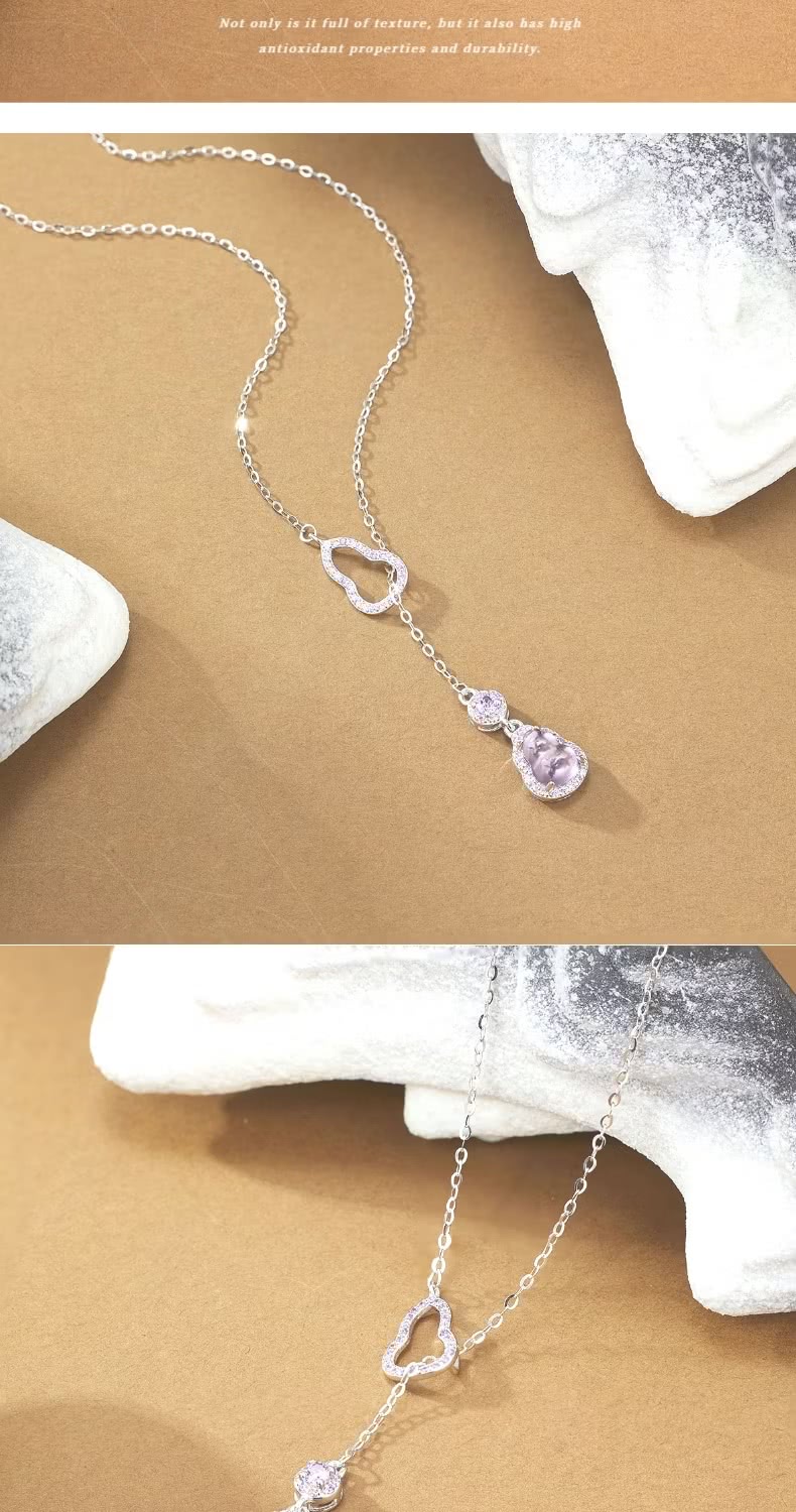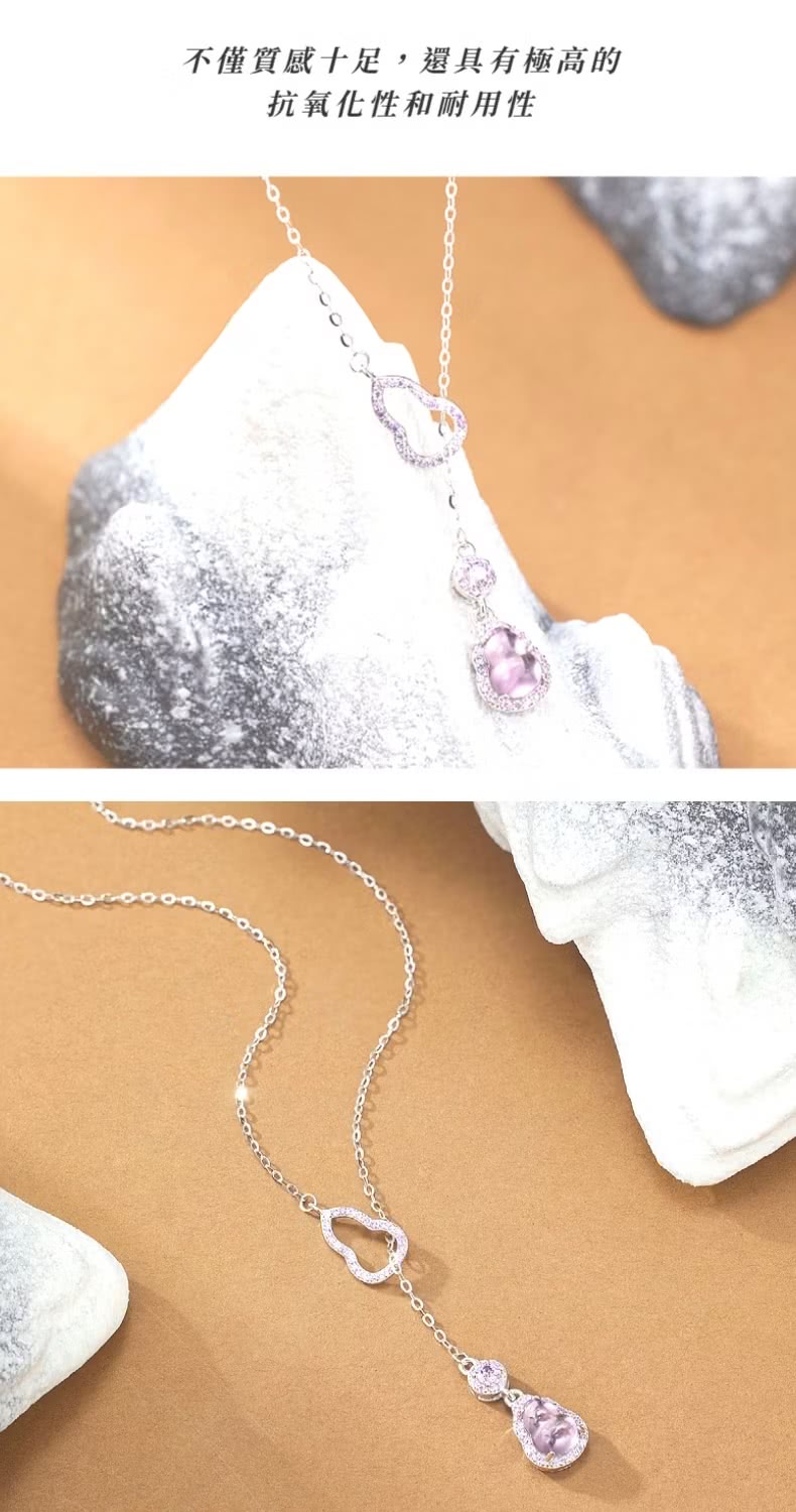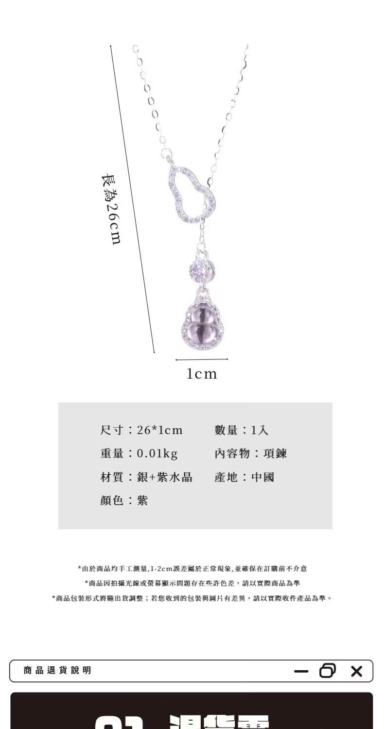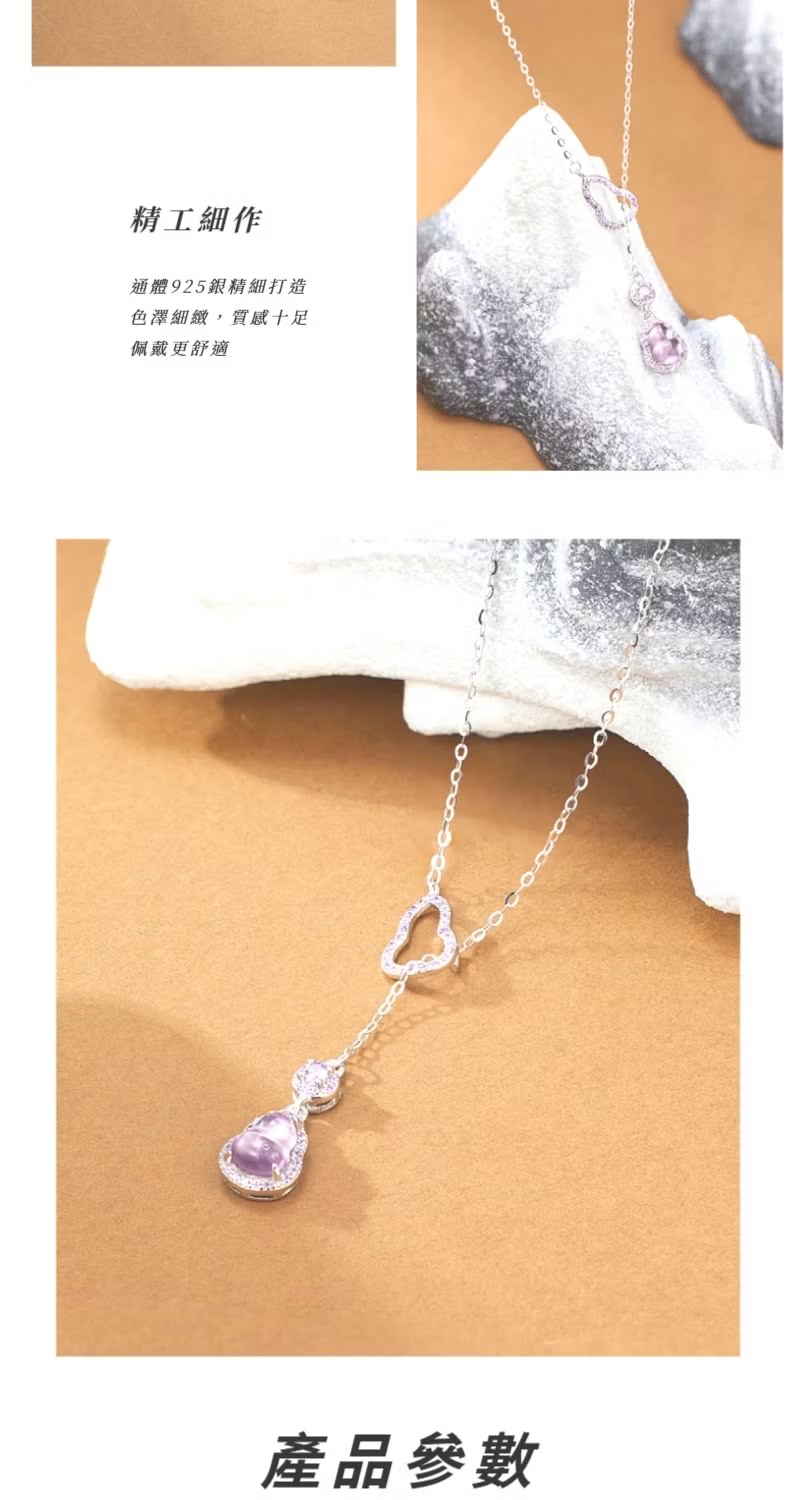 【貴氣福報】S925銀紫水晶葫蘆項鍊(化煞 防小人 福祿 平安 招財 鎖骨鍊 頸鍊 飾品)