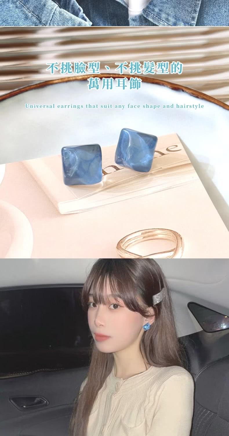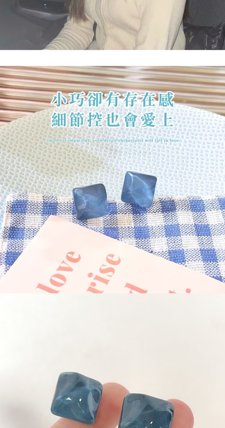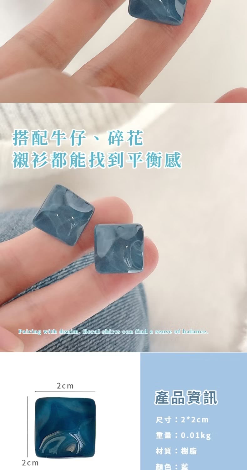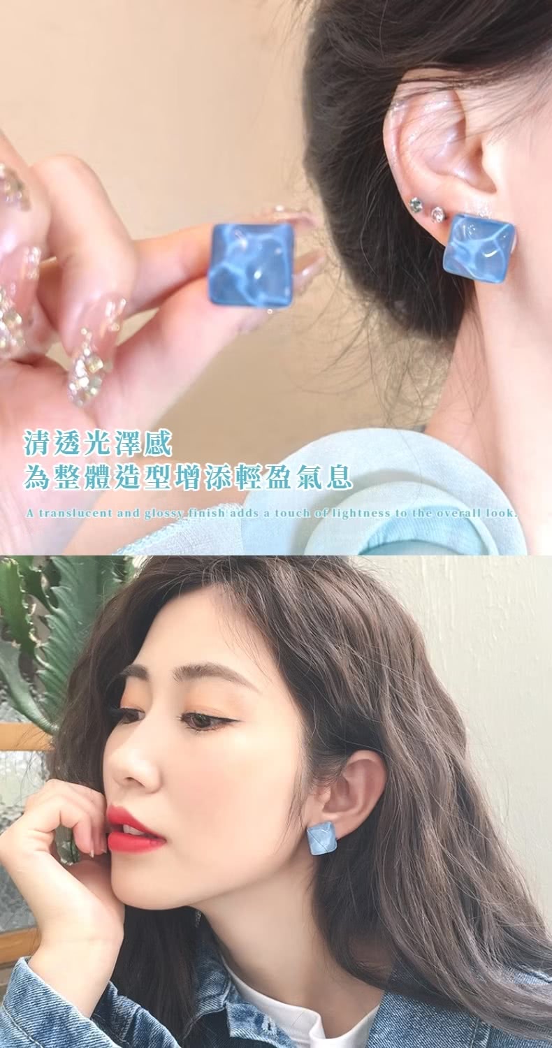 【蔚藍冰痕】波光粼粼清新冰藍方塊耳環(耳釘 耳針 耳飾 飾品 不規則 穿搭配件)