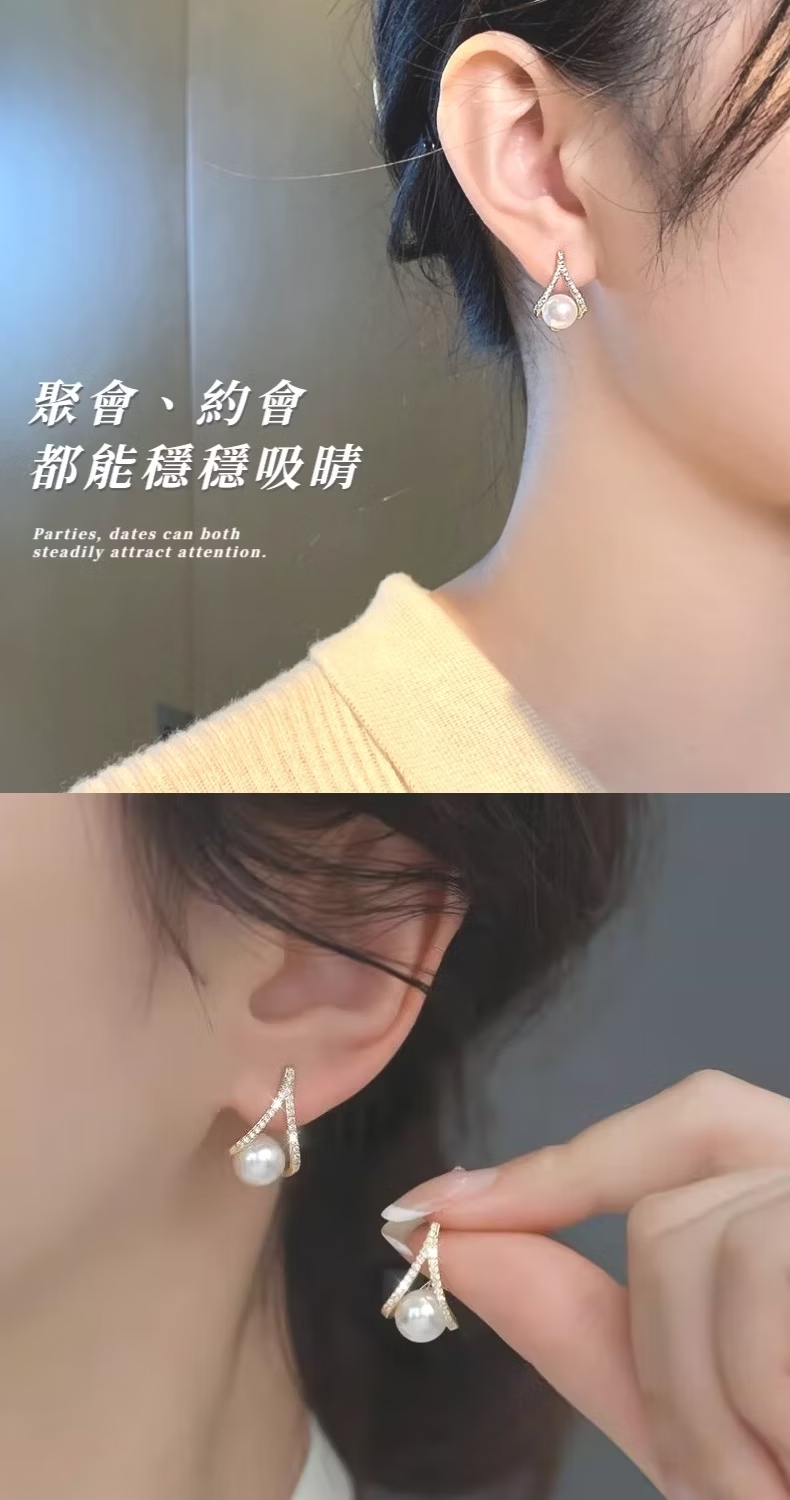 【輕奢單品】韓系浪漫回憶倒V珍珠鋯石耳環(高級感 耳針 耳釘 耳飾 女)