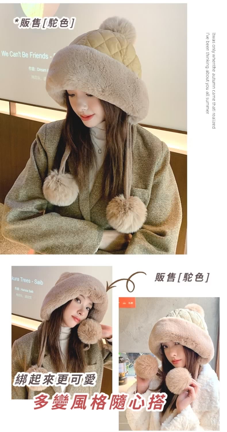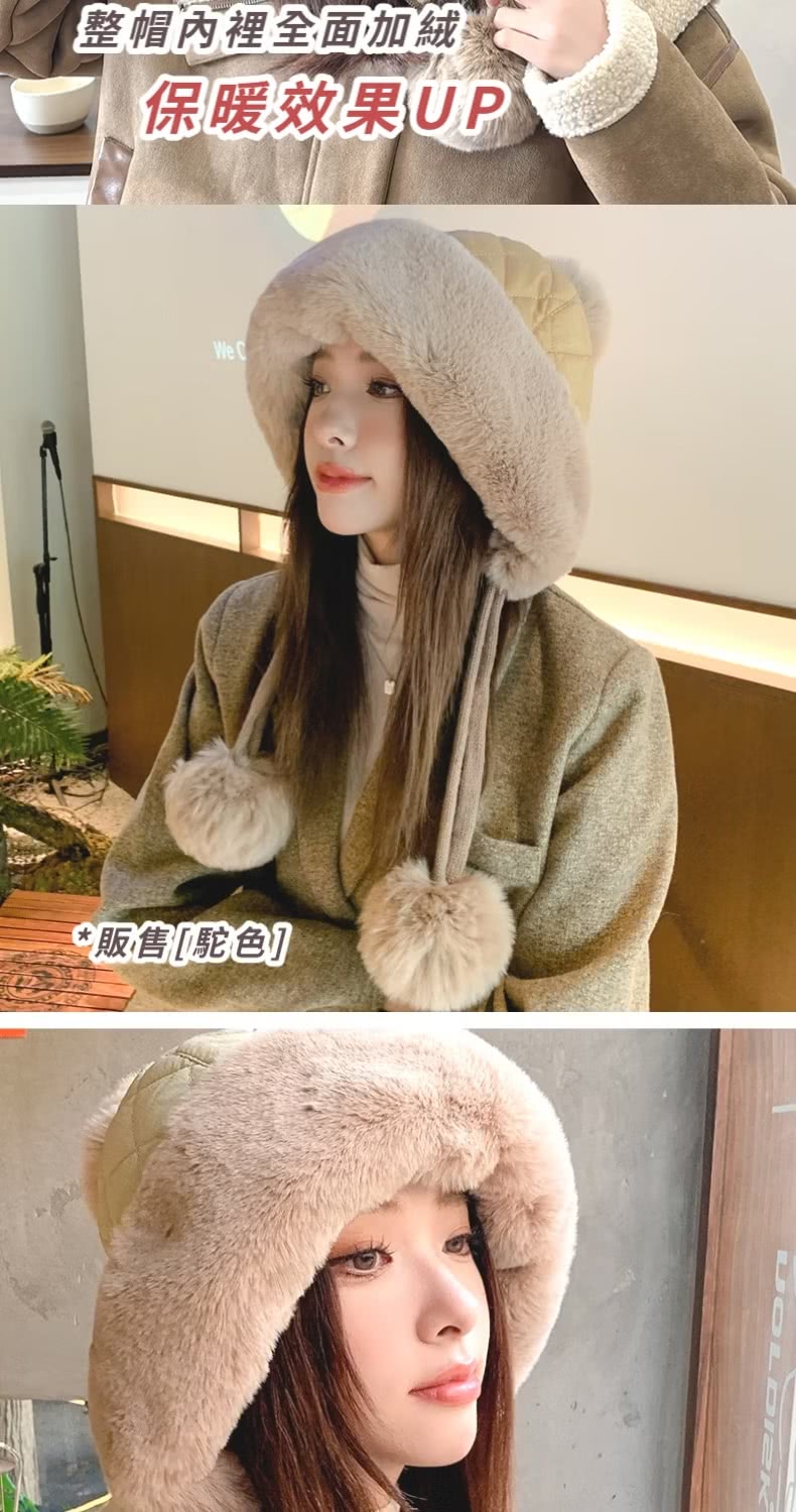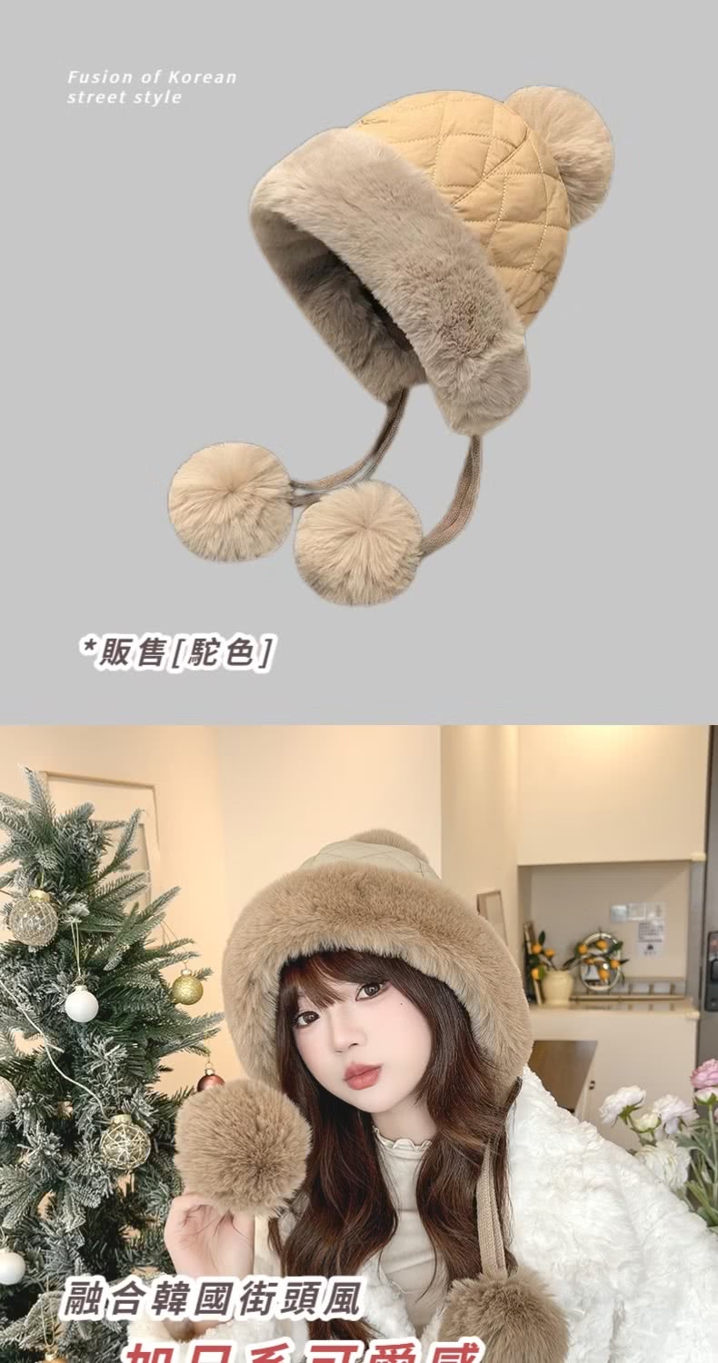【小臉神帽】韓系冬季加絨護耳球球毛帽(毛球針織 保暖 聖誕交換禮物 毛線帽 防寒帽 防風帽 穿搭配件)