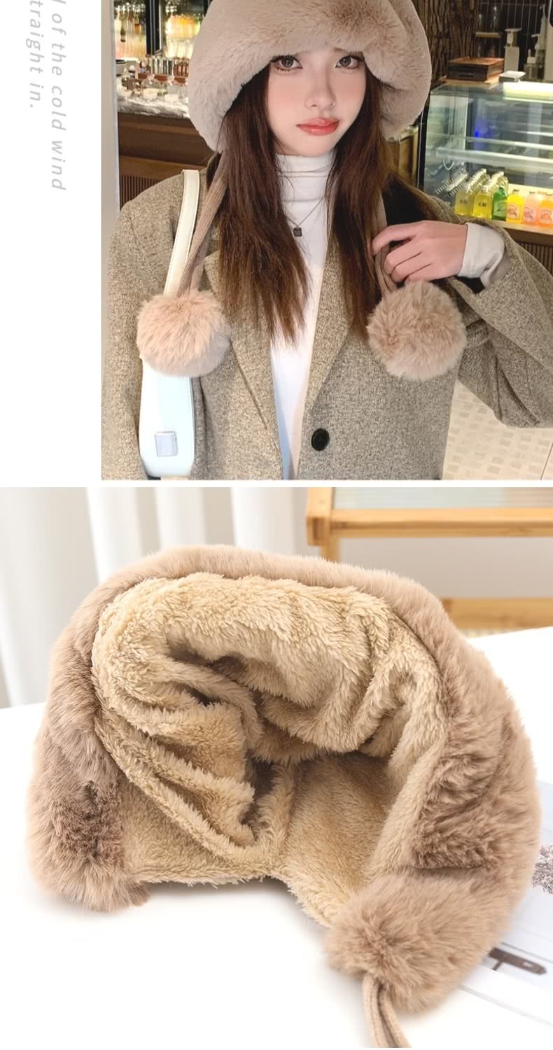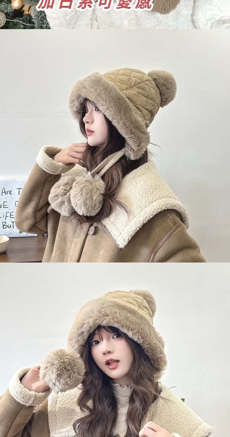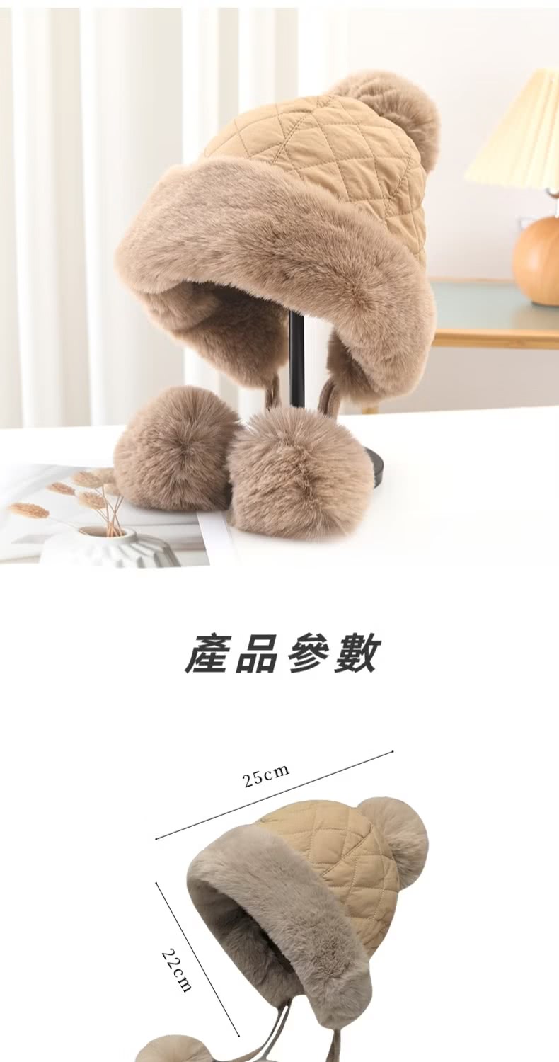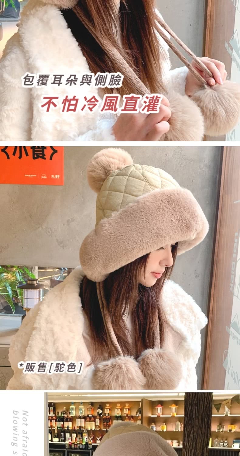 【小臉神帽】韓系冬季加絨護耳球球毛帽(毛球針織 保暖 聖誕交換禮物 毛線帽 防寒帽 防風帽 穿搭配件)