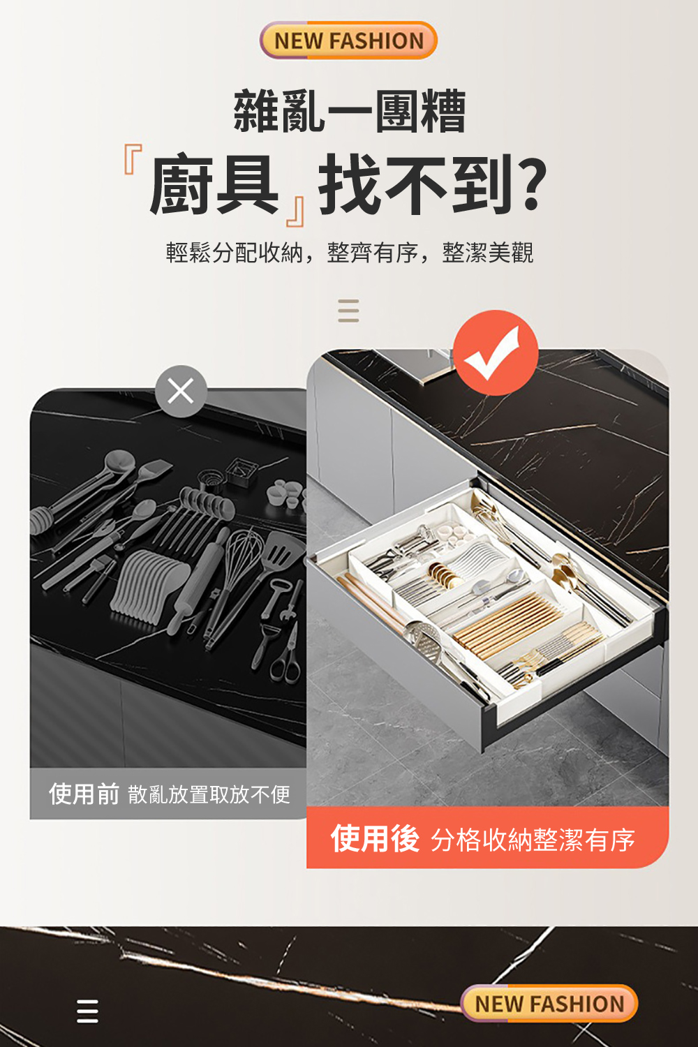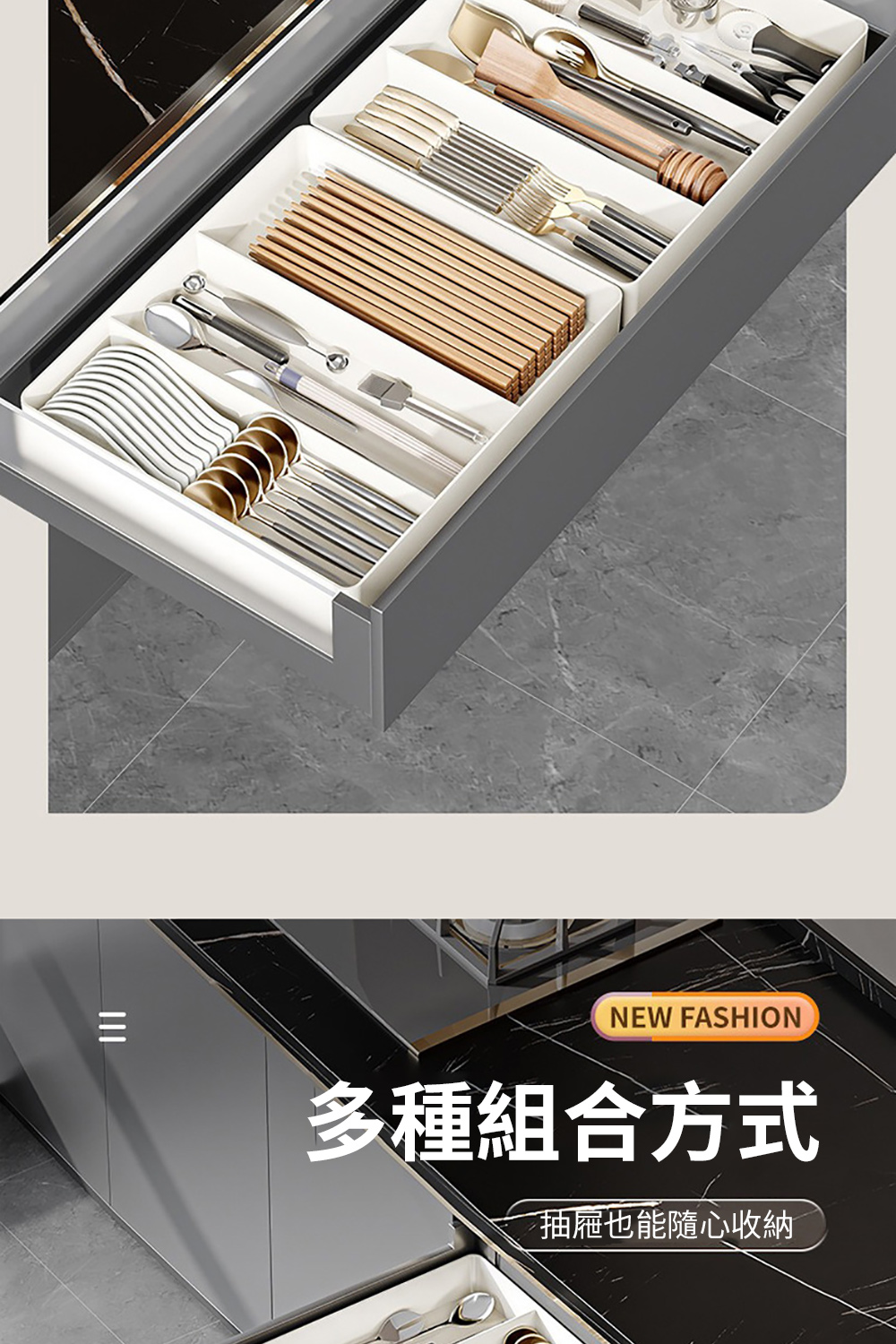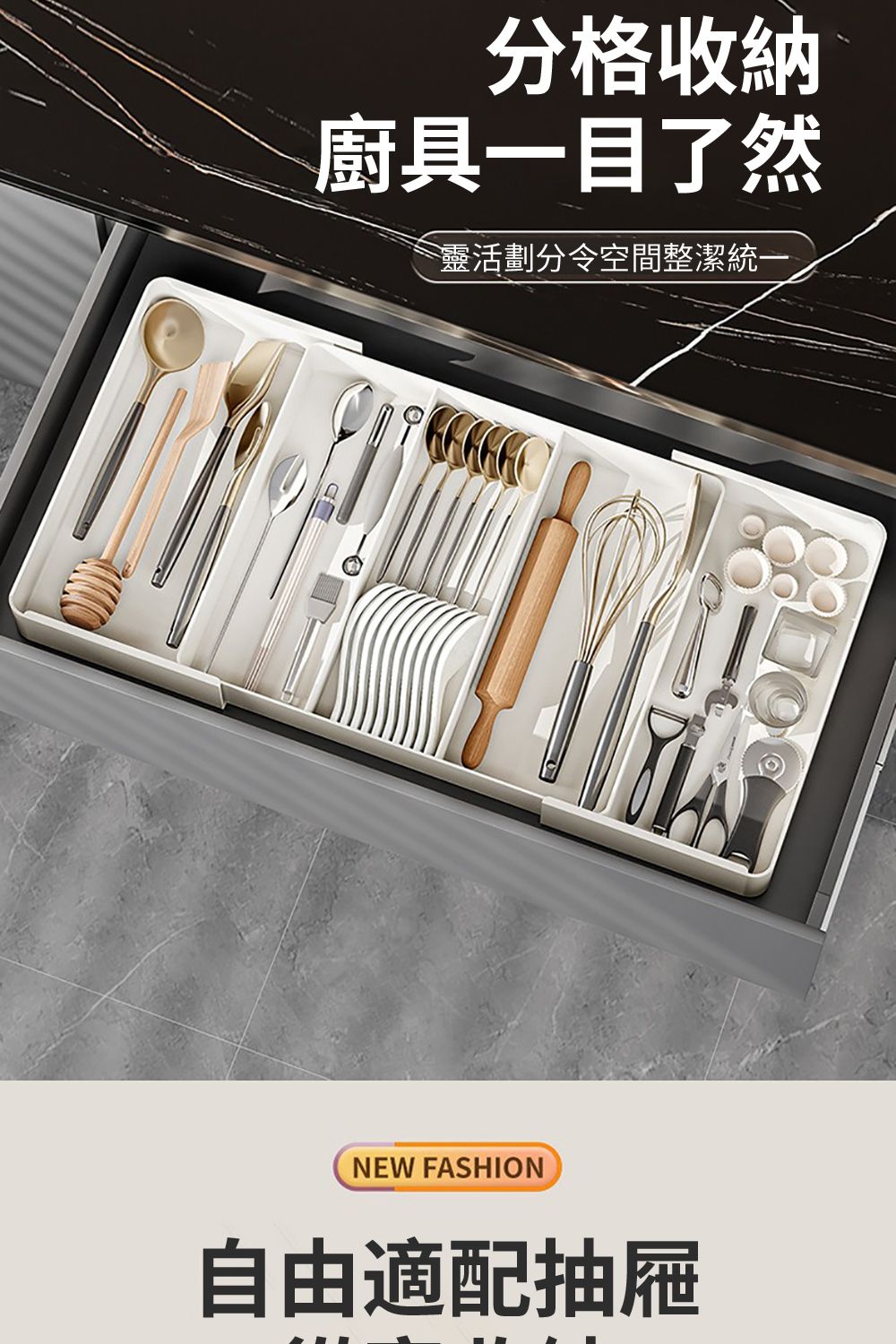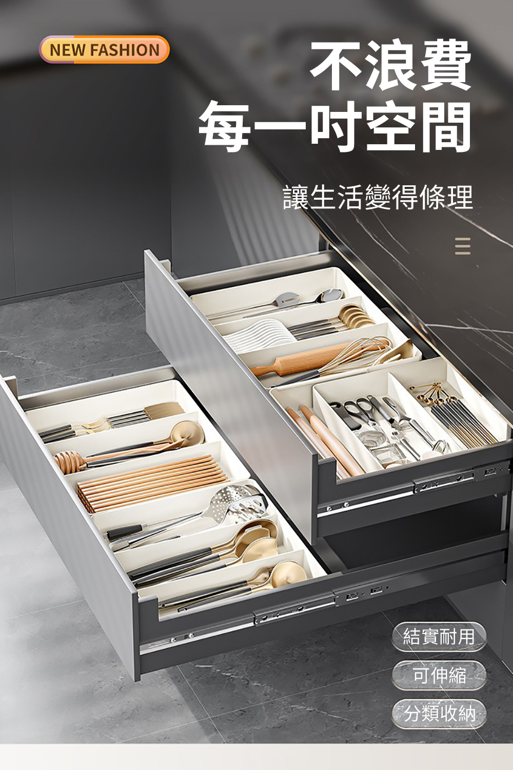 【zLife】廚房抽屜可伸縮收納盒 廚房抽屜收納盤 可拆分式餐具收納託盤 多格收納盒 分隔整理盒 分類置物收納