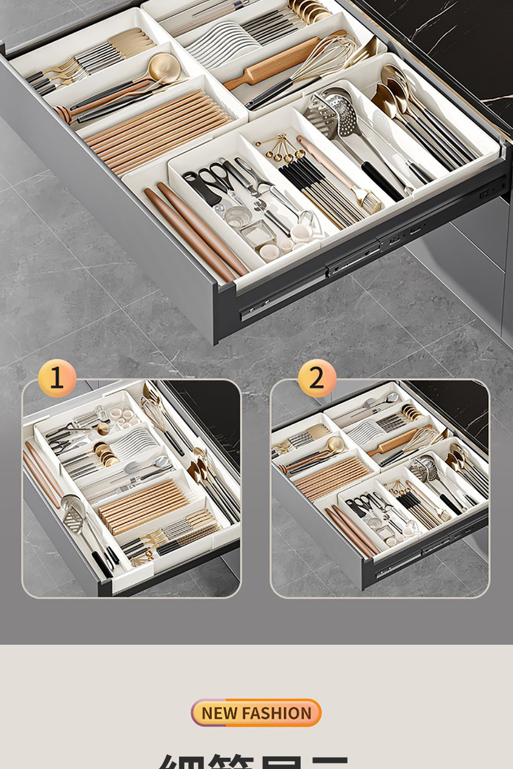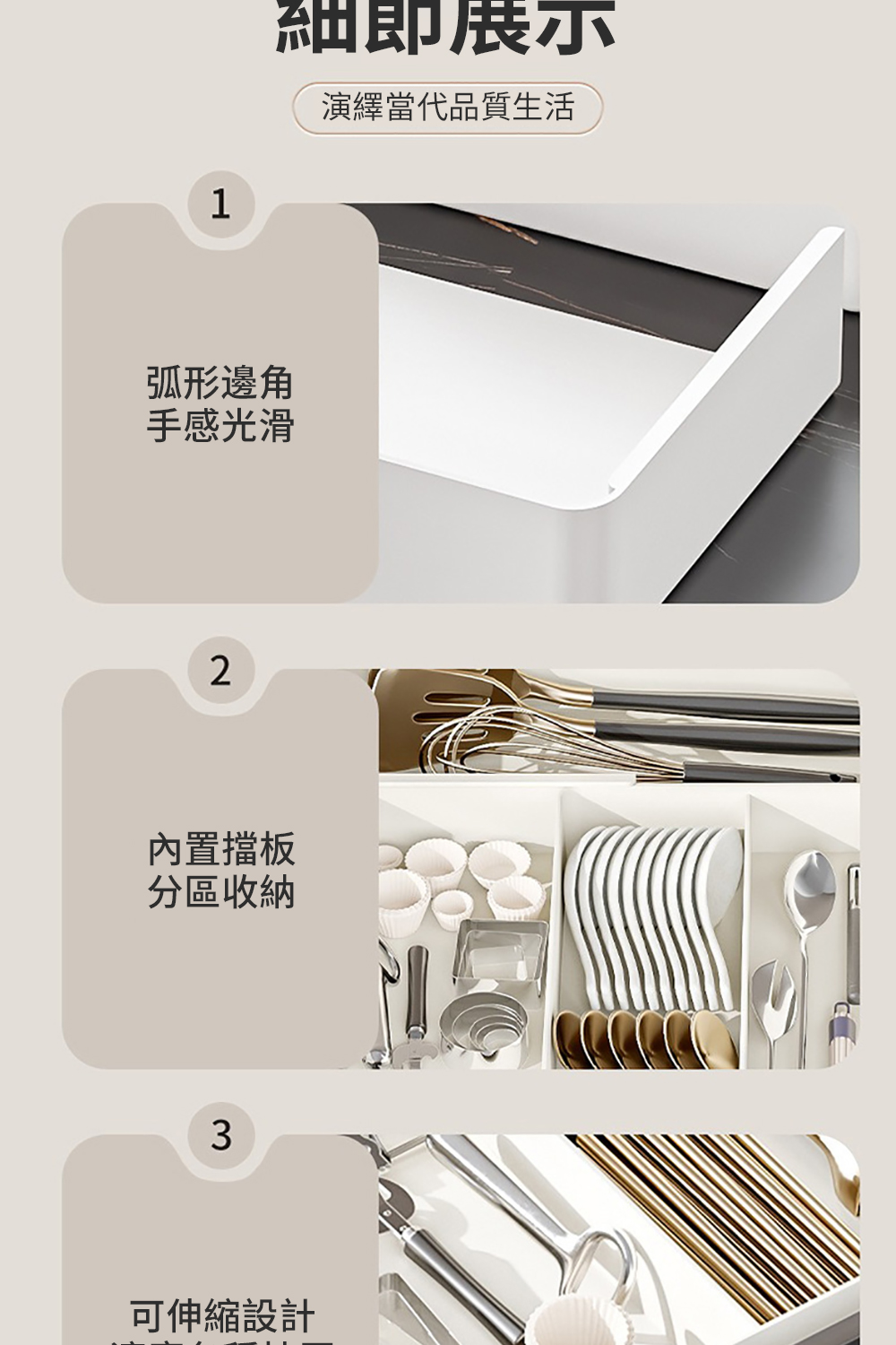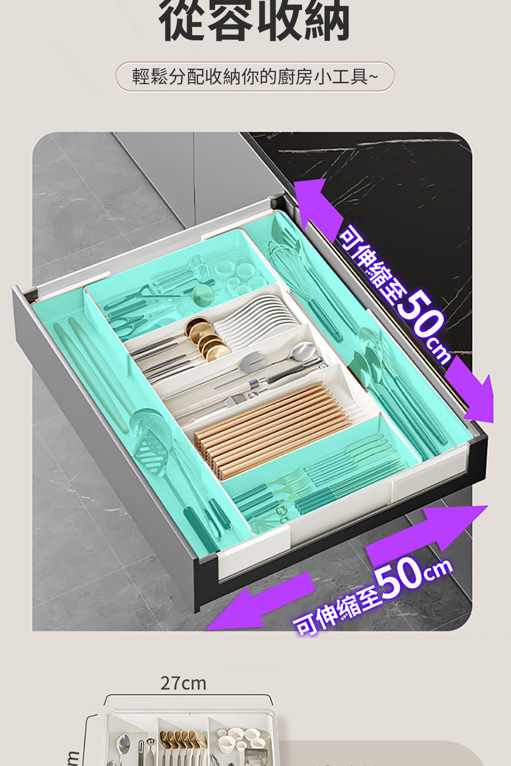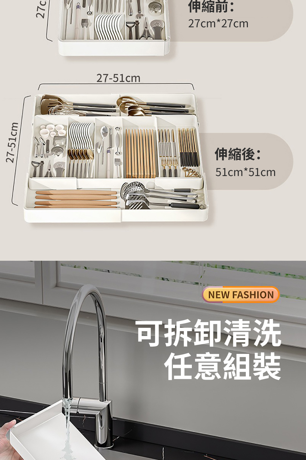【zLife】廚房抽屜可伸縮收納盒 廚房抽屜收納盤 可拆分式餐具收納託盤 多格收納盒 分隔整理盒 分類置物收納