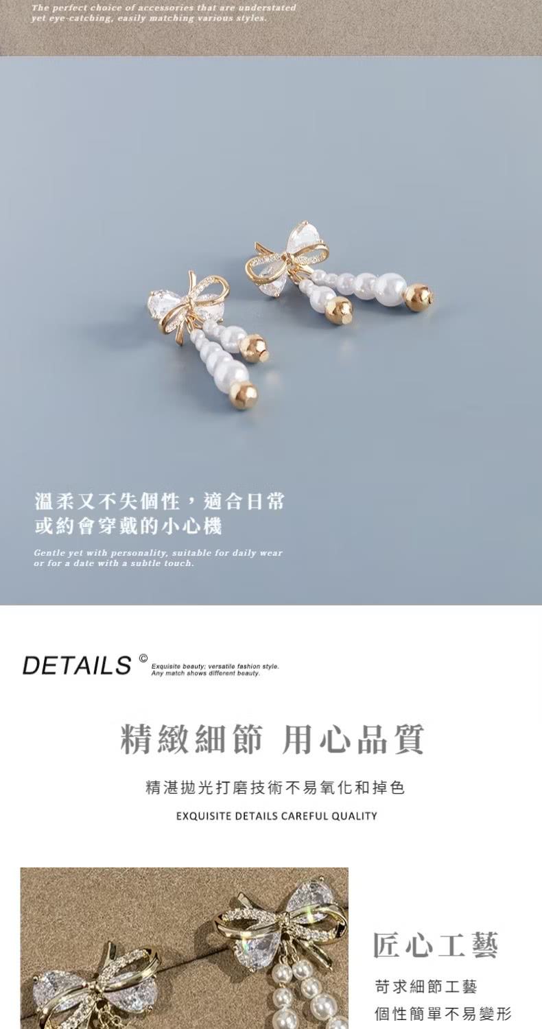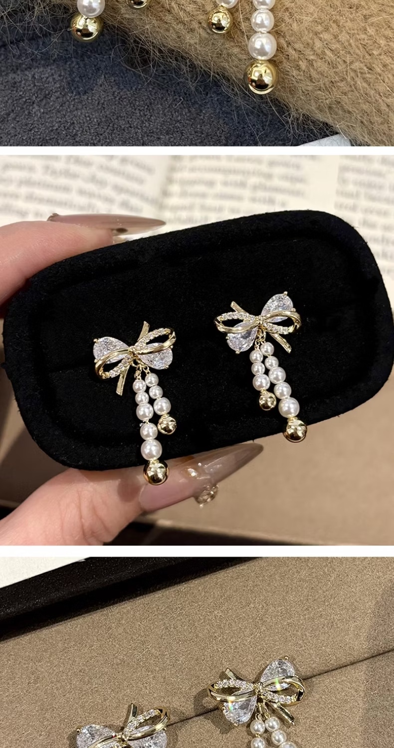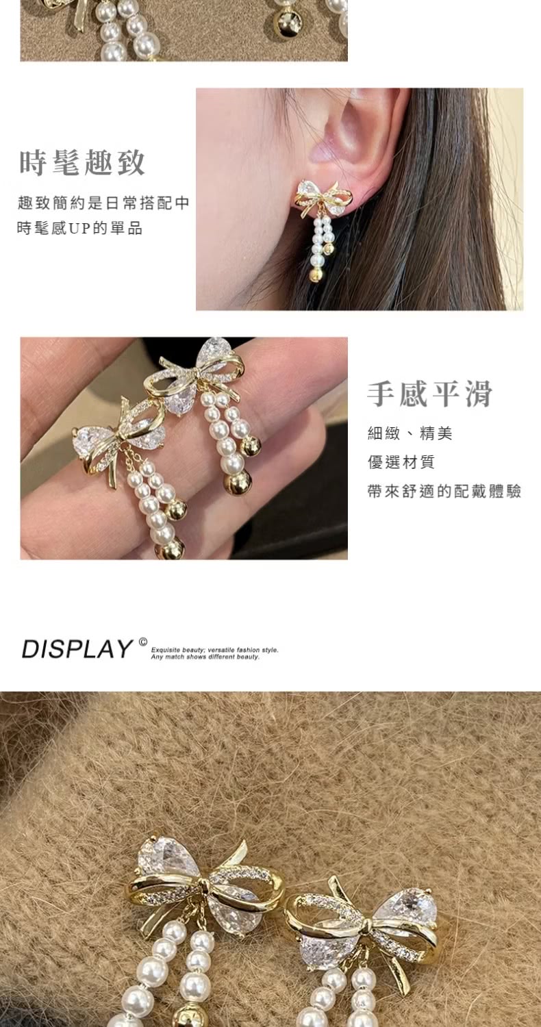 【流蘇亮麗】鋯石珍珠蝴蝶結耳環1對(耳飾 耳墜 飾品 耳針 耳釘 首飾 耳圈 情人節 配件 禮物)