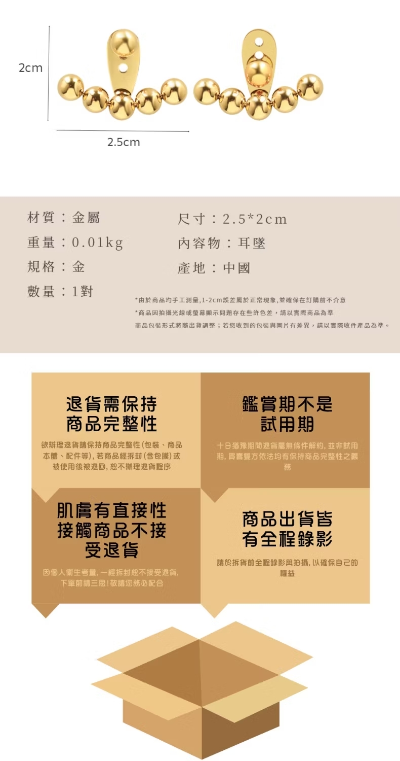 【氣質低調】金豆耳墜1對(耳飾 耳環 飾品 耳針 耳釘 首飾 耳圈 情人節 配件 禮物)
