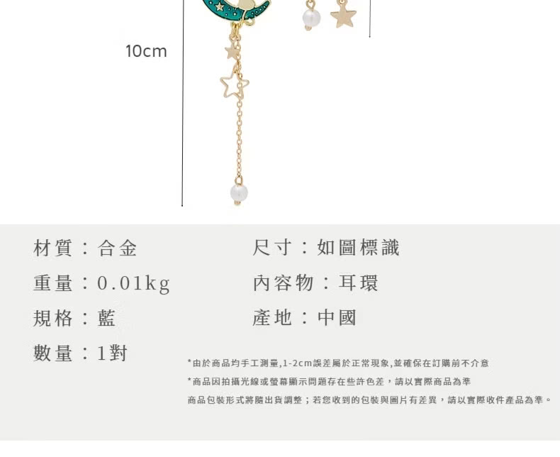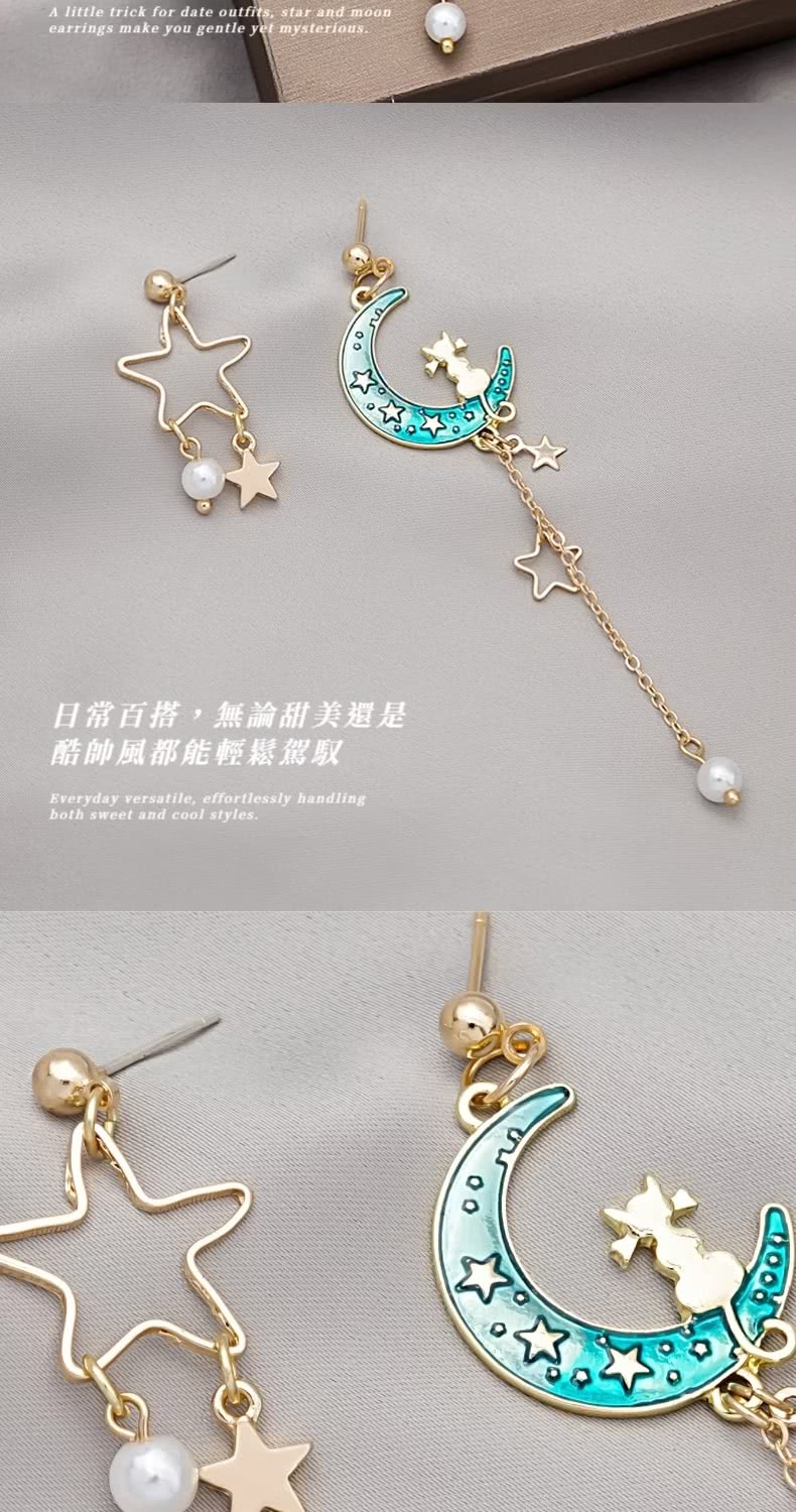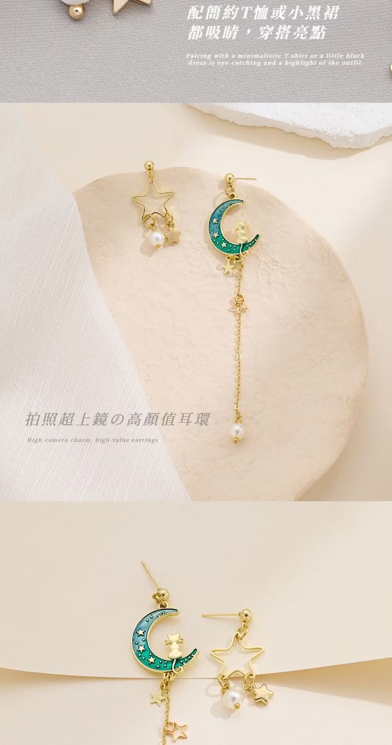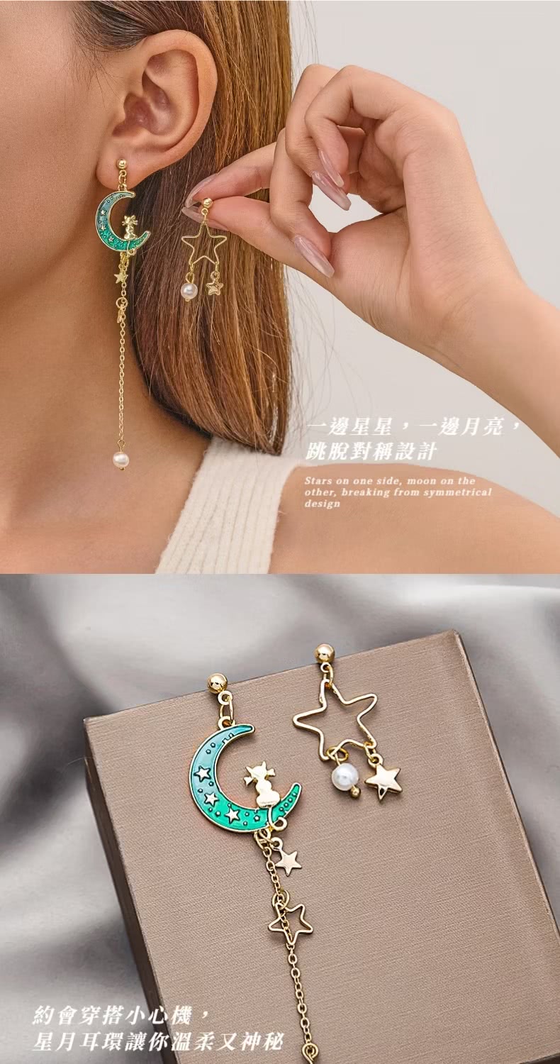 【唯美夢幻】不對稱星月耳環1對(月亮 貓咪 簡約 耳飾 耳墜 飾品 耳針 耳釘 首飾 配件 禮物)