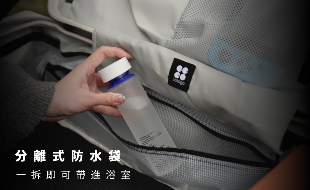 的分離式防水袋,輕鬆收納可能漏液的瓶瓶罐罐,