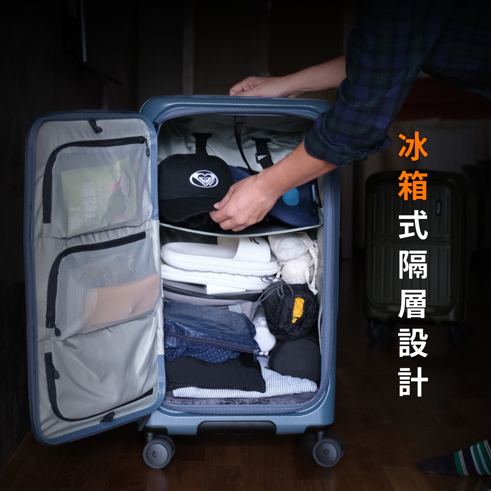 不受狹小空間限制,日本飯店窄小走道也能站著整理,不必躺平占空間。搭配冰箱式分隔層,立著也能高效收納。