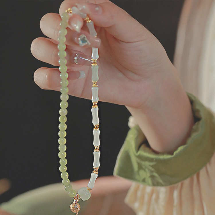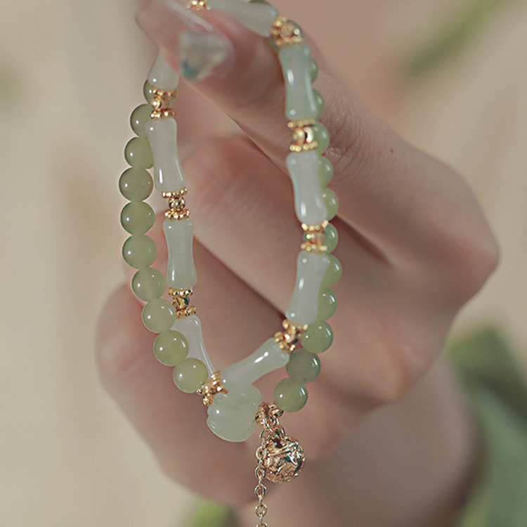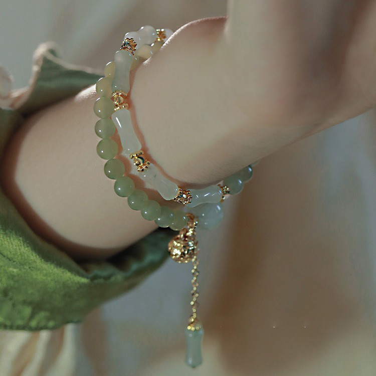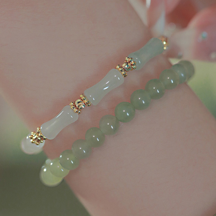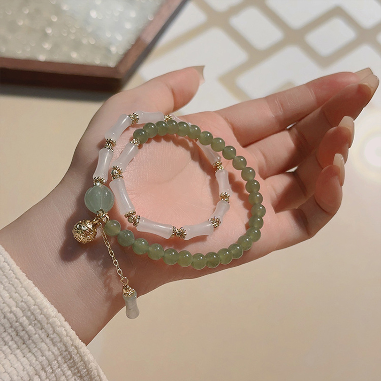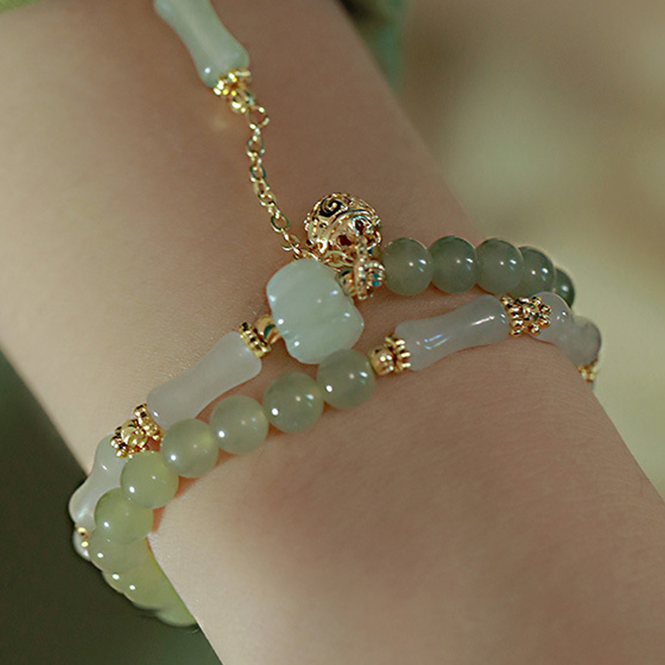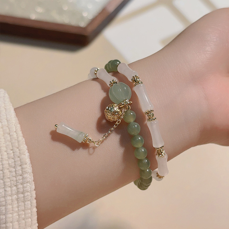 【Jpqueen】翠竹和田玉串珠中式典雅復古多圈手串手鍊(2色可選)