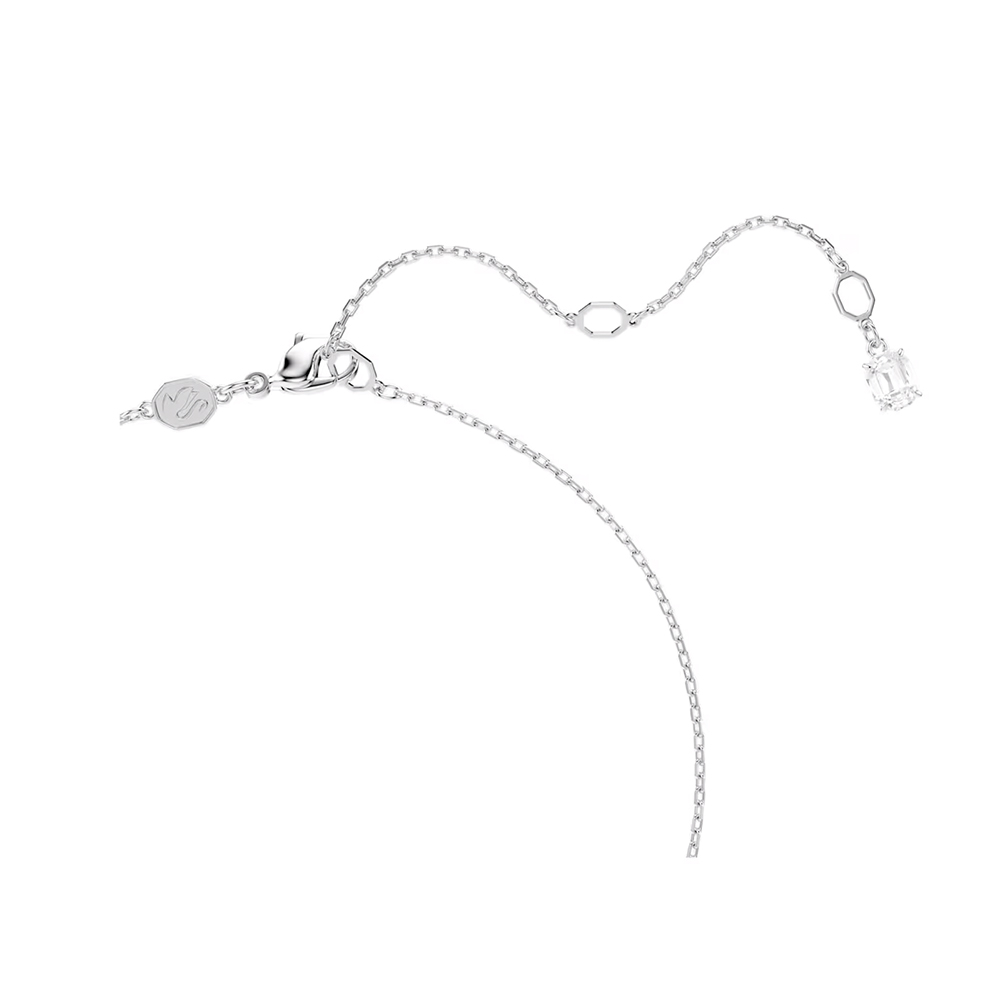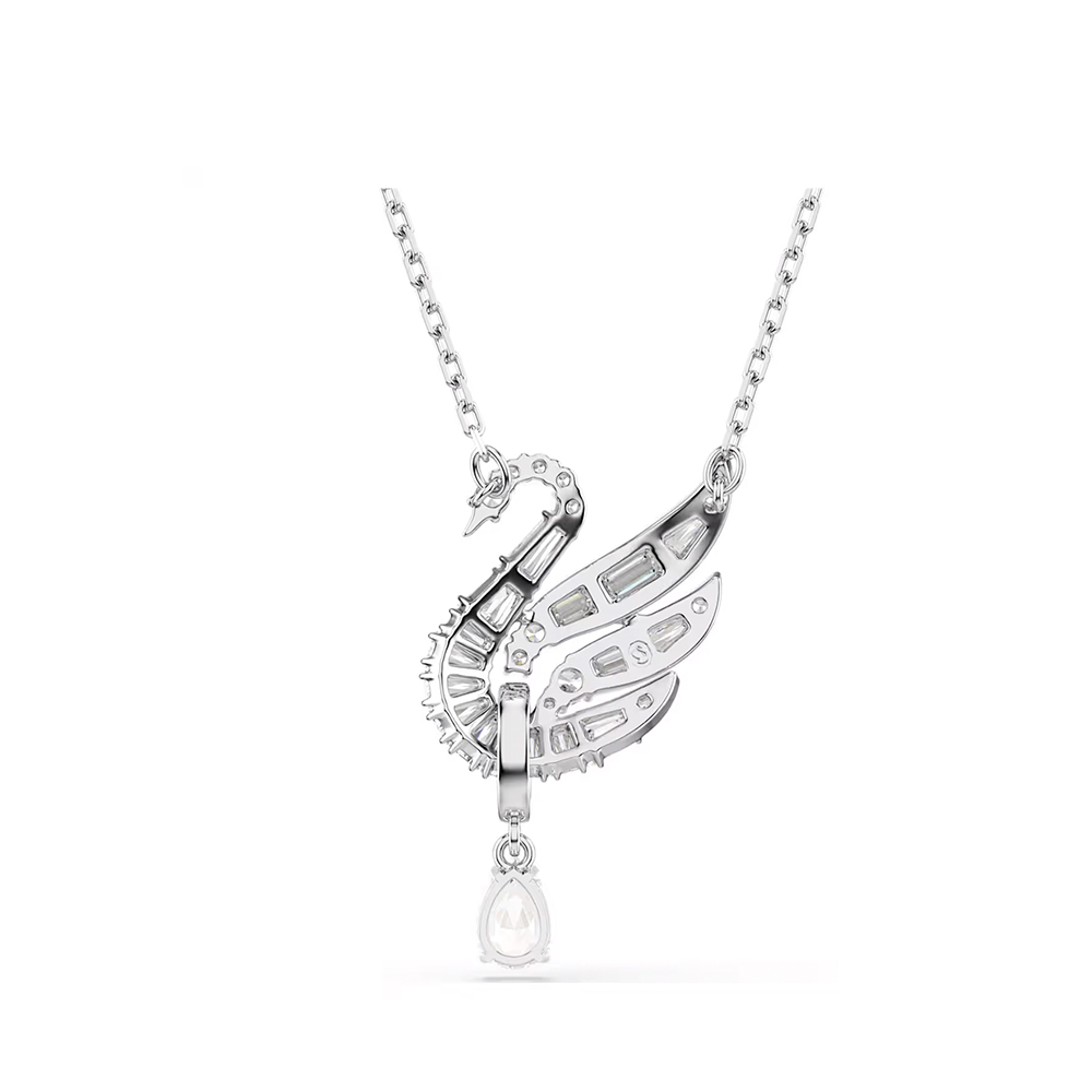 這款別具意義的鏈墜,細節之處皆展現高雅的美感,頌揚代表性 Swarovski 天鵝的優雅特質。中央圖案懸掛於精緻鏈條上,飾有透明色 Swarovski 鋯石,並綴以單顆梨形切割 Swarovski 鋯石,垂墜於 Swarovski 水晶珍珠的密鑲大圈下方。搭配成套耳環佩戴,打造純粹精緻的造型。