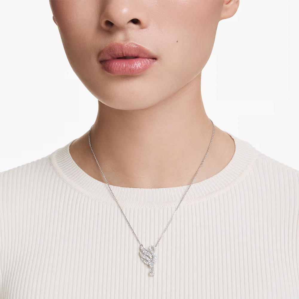 【SWAROVSKI 施華洛世奇】Swan 鏈墜 天鵝 白色 鍍白金色(情人節禮物)