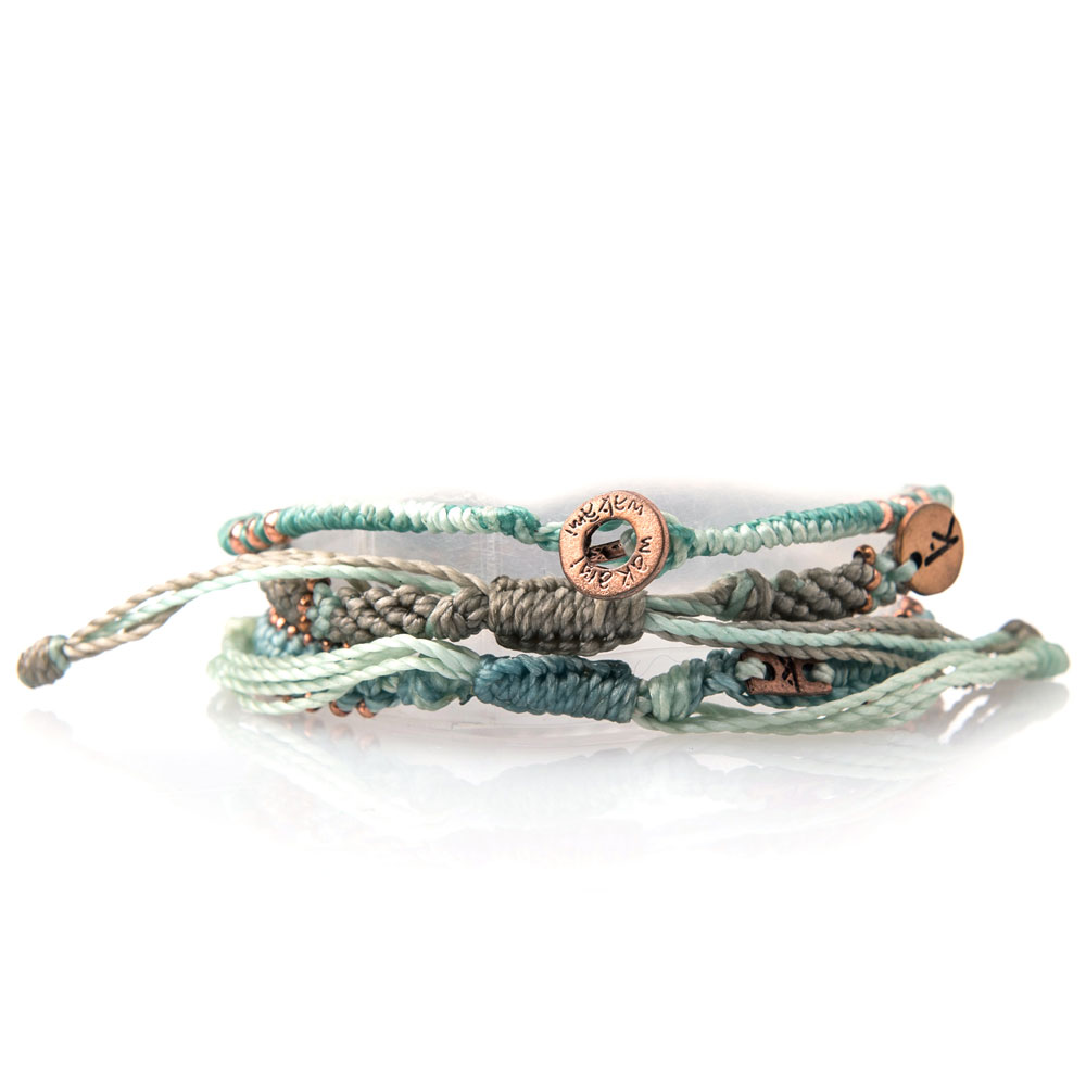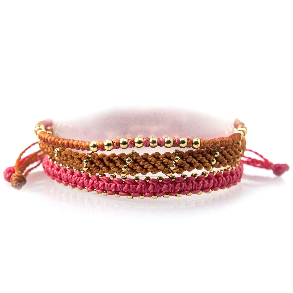 Wakami 星星經典 手鍊三件組 手工編織 咖啡色蠟繩 金銀色串珠手環 WA0540