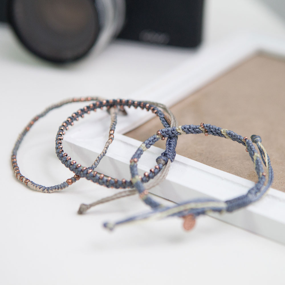 是由遠離都市的農村地區精心製造,材質使用蠟繩與玻璃珠。