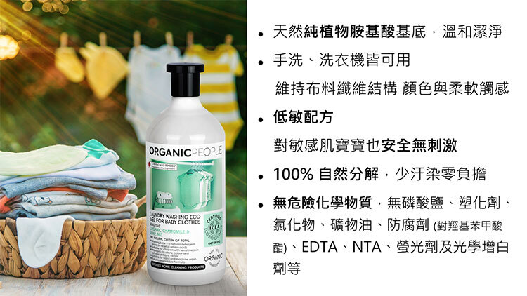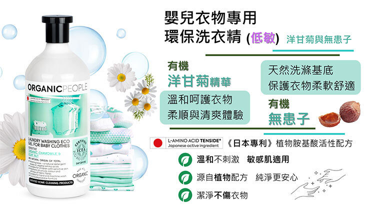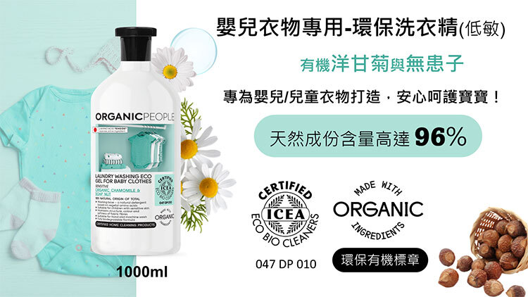 【ORGANIC PEOPLE】濃縮洗衣精嬰兒衣物專用|洋甘菊/無患子/1000ml/2入(有機生活《送淨亮擦拭布2入》)