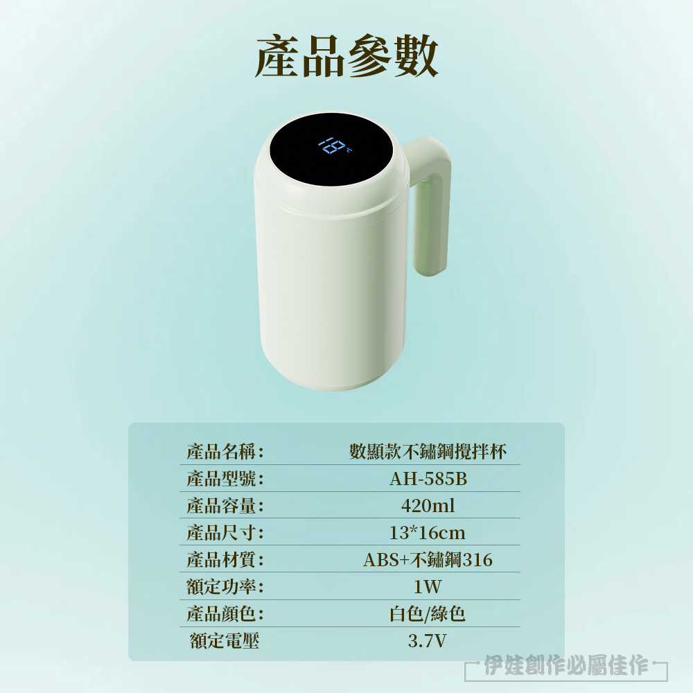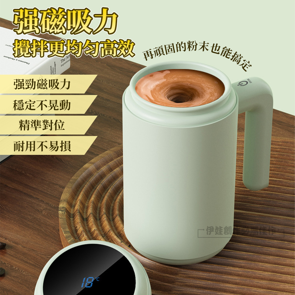 【伊德萊斯】316不鏽鋼自動磁力攪拌杯 智能數顯保溫杯 隨行咖啡杯 420ml(電動攪拌杯 交換禮物)