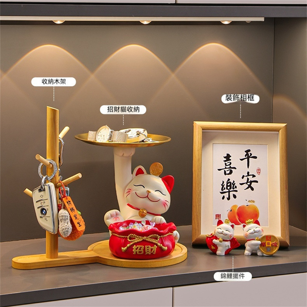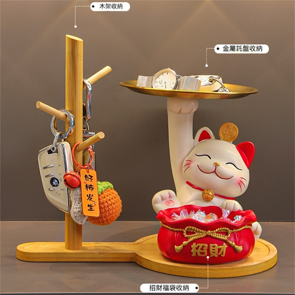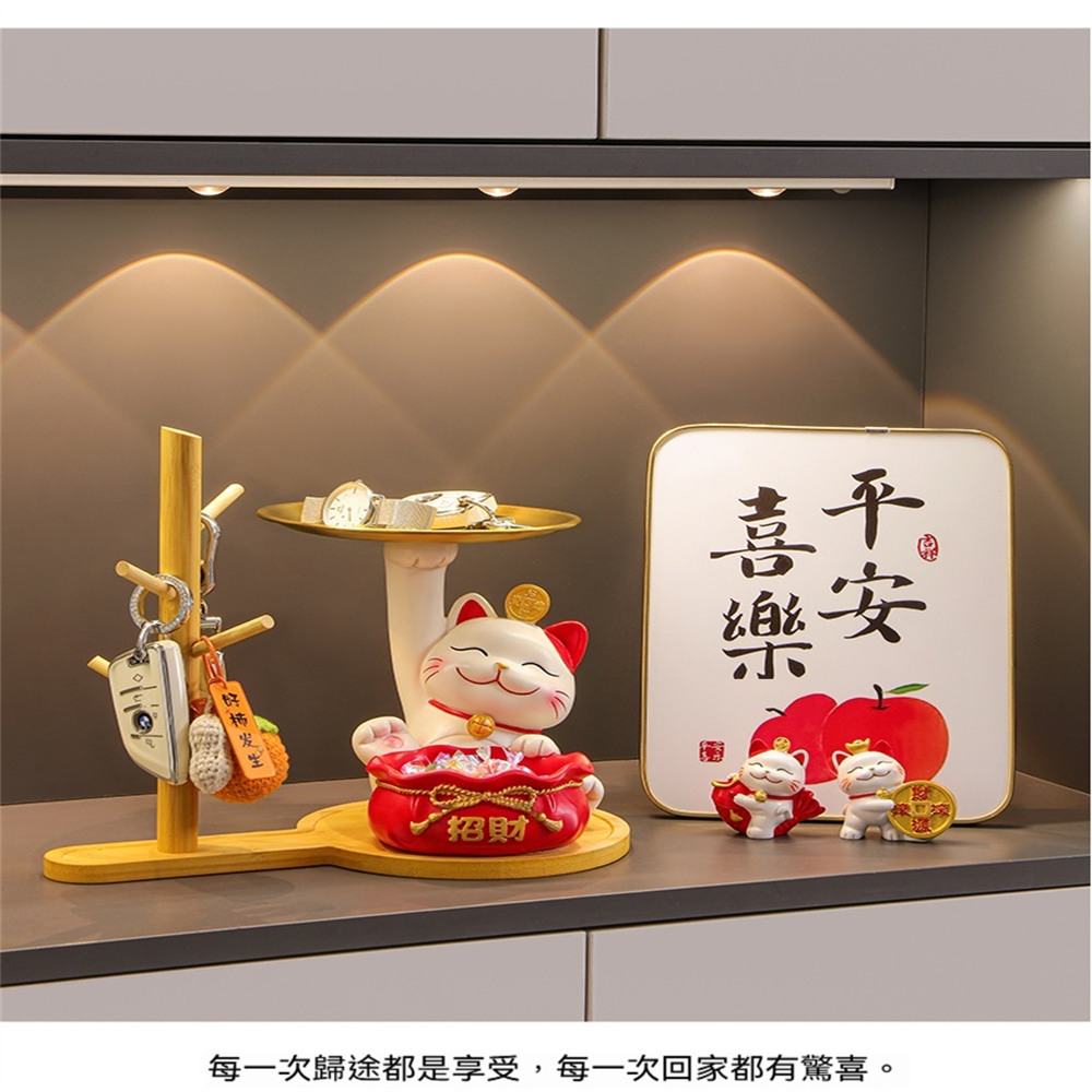 【超微米】招財貓鑰匙收納架 玄關裝飾品 入戶擺件 門口鞋櫃客廳置物架 家居喬遷新居禮品(玄關入戶擺件)