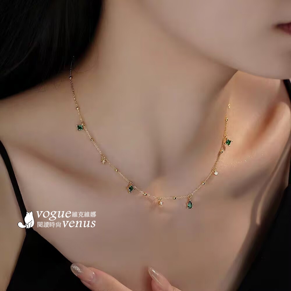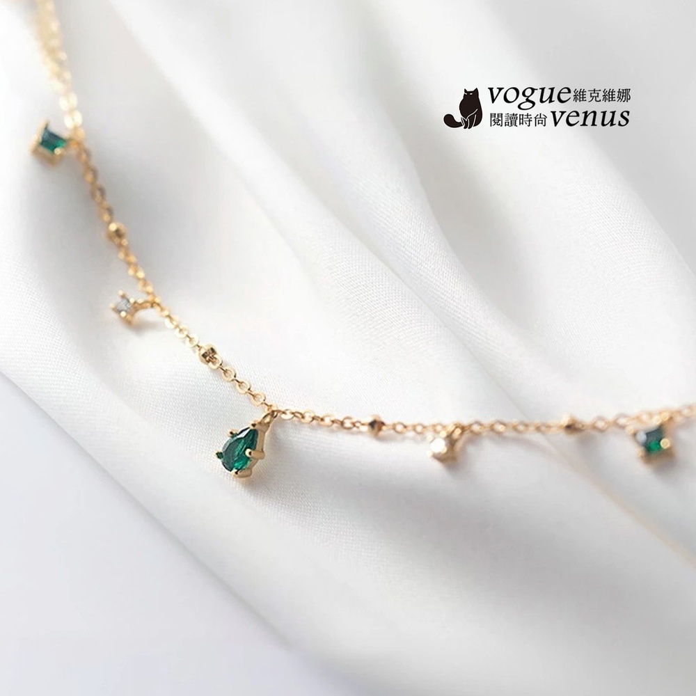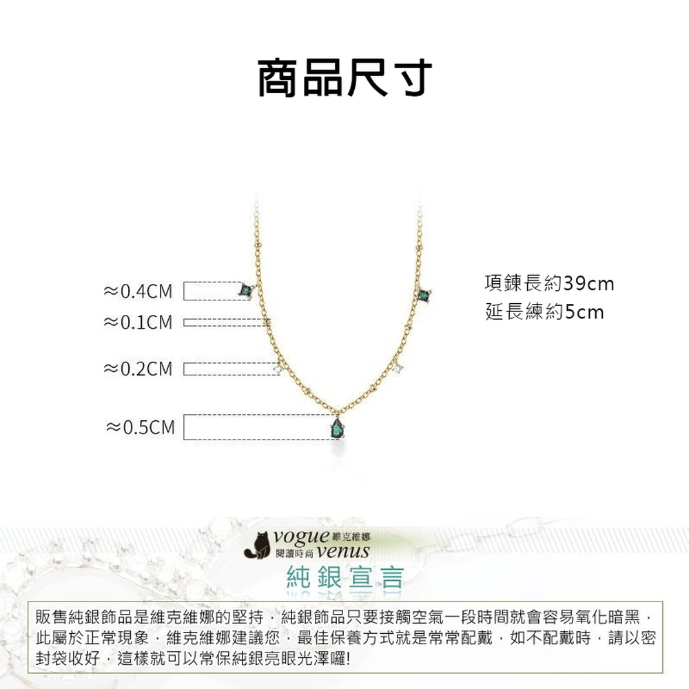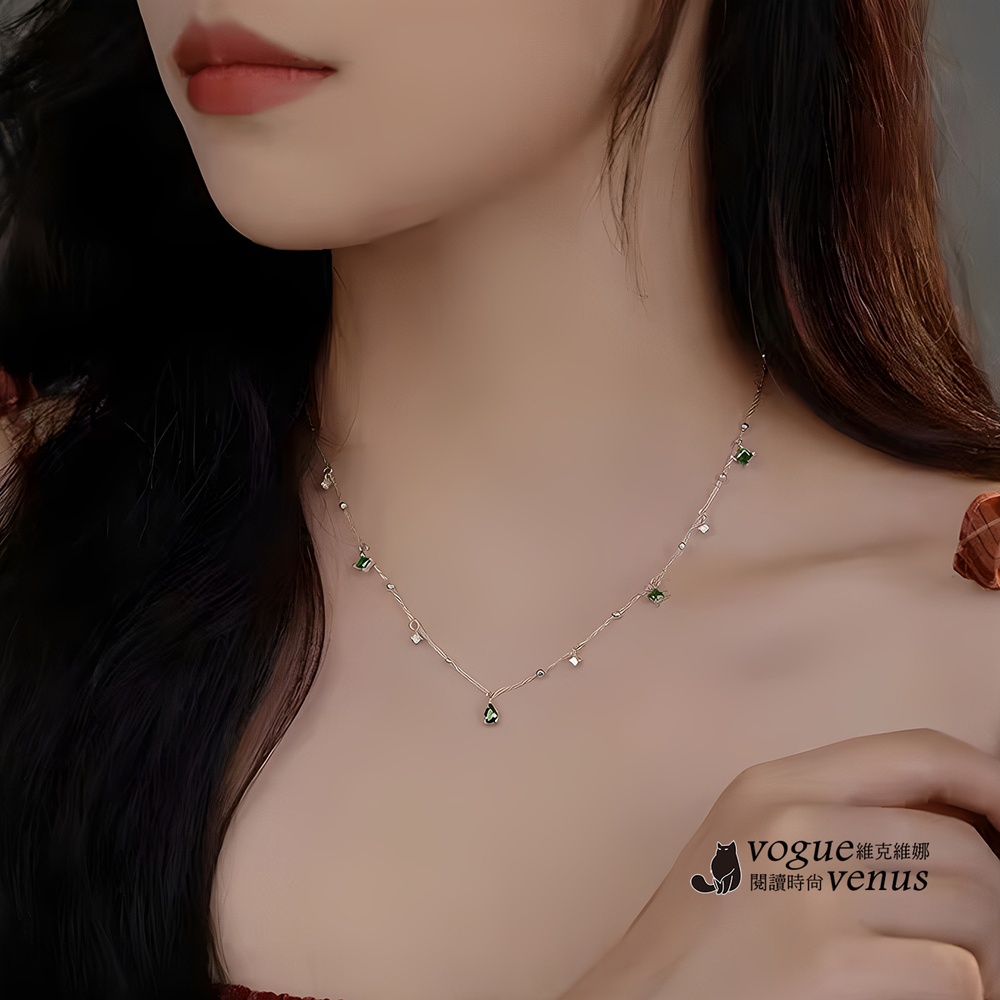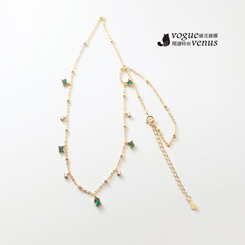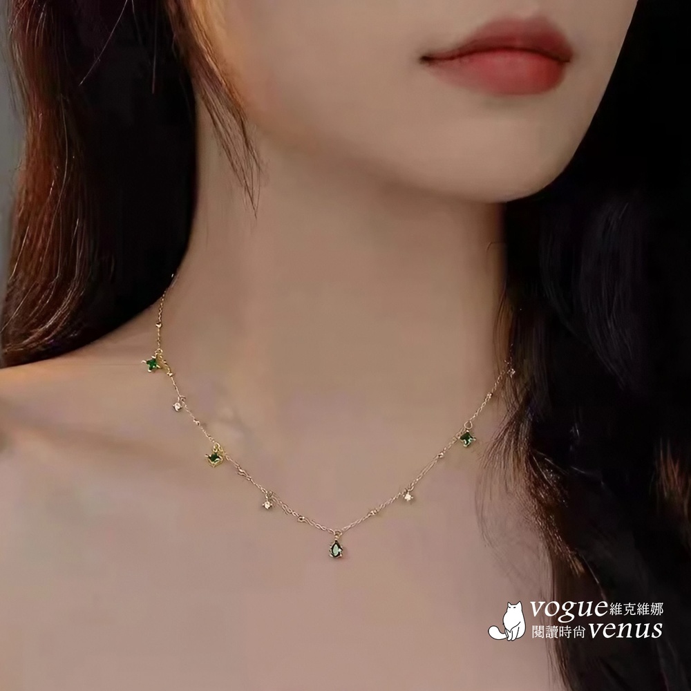 【維克維娜】祖母綠水滴水鑽流蘇925純銀項鍊
