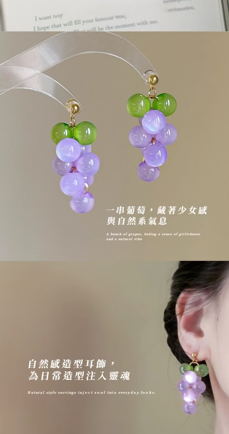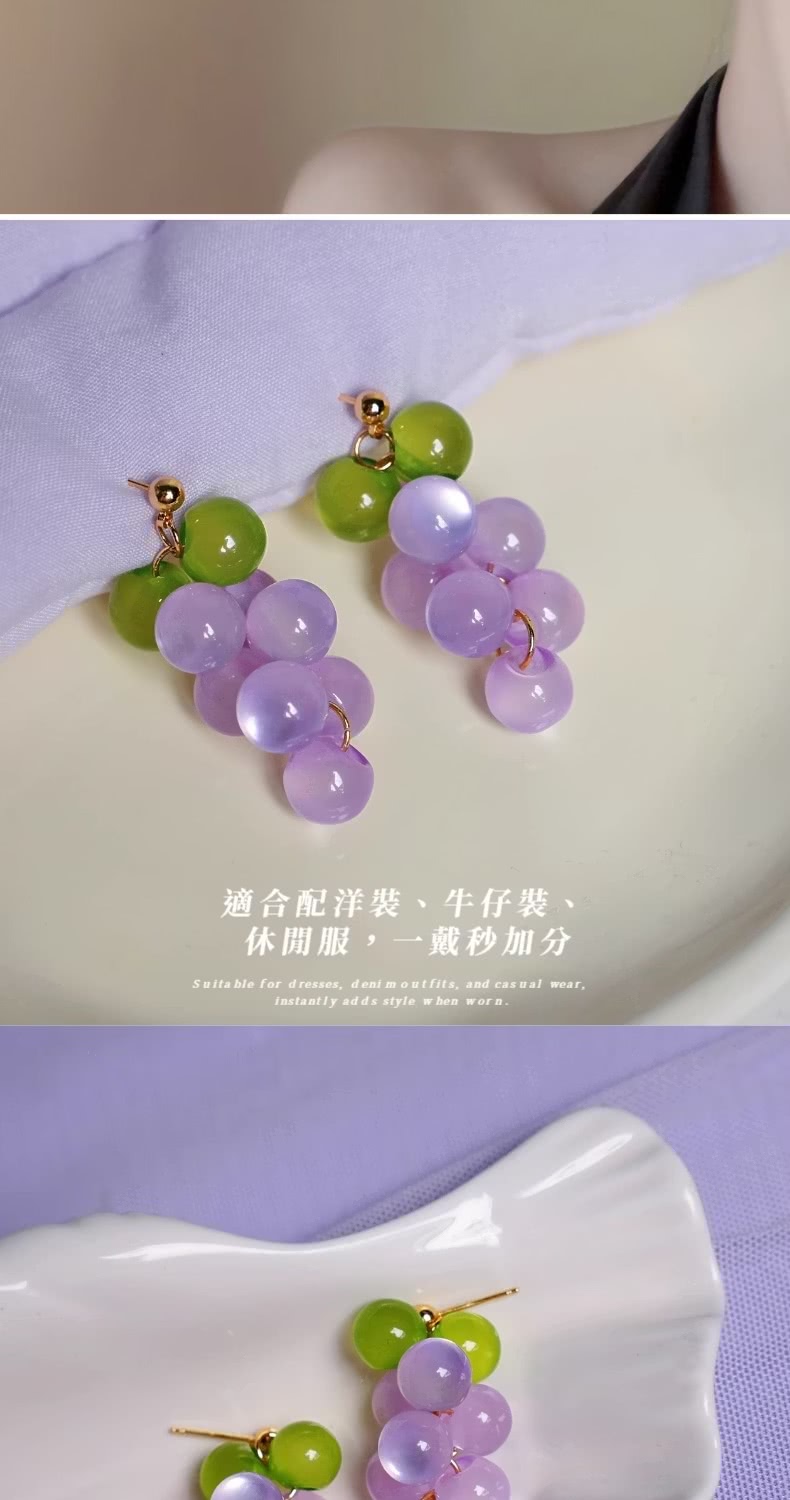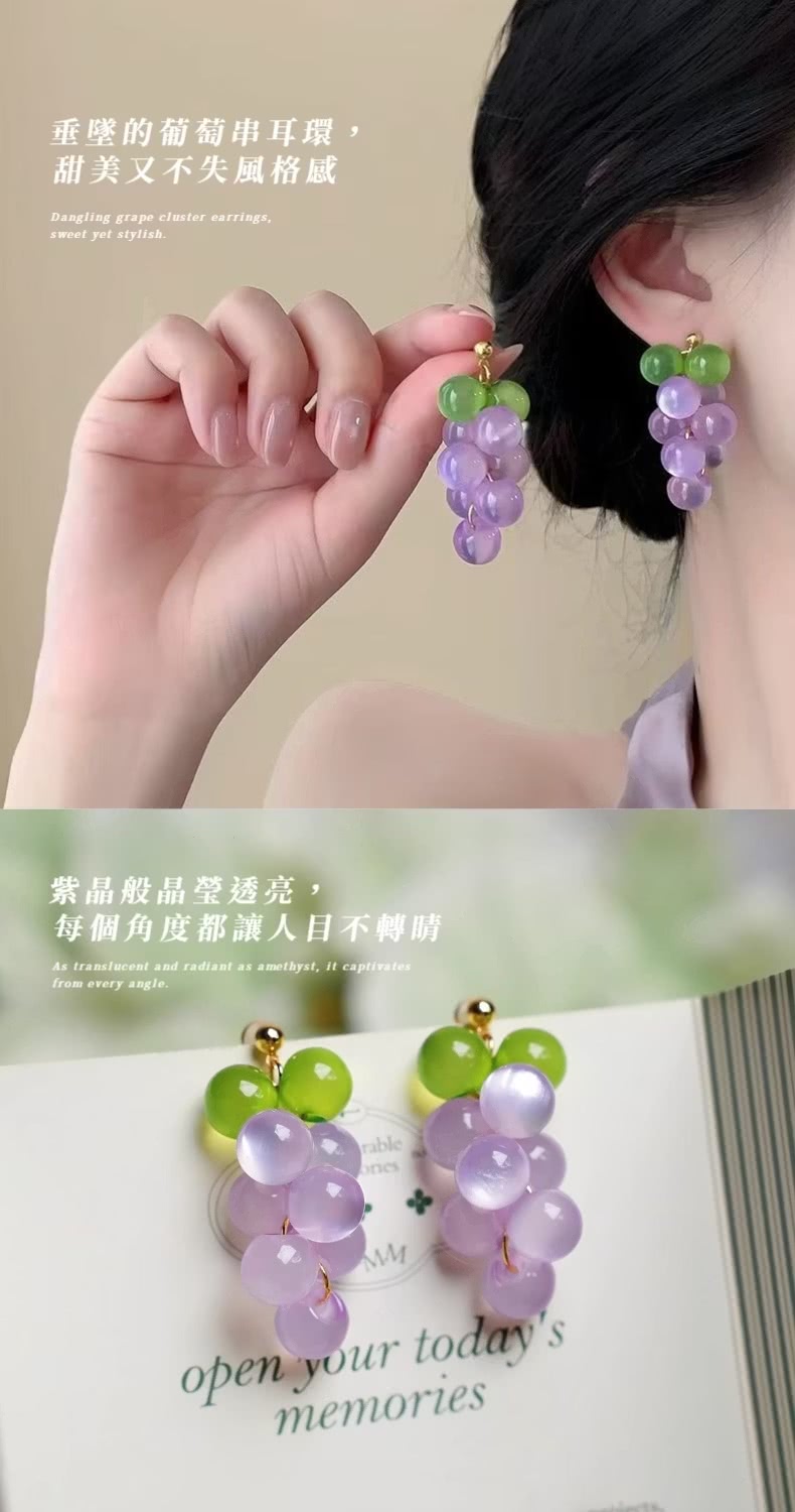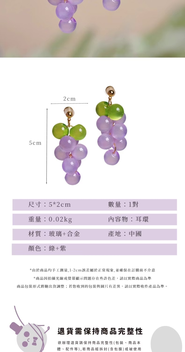 【多子多孫】葡萄串耳環1對(耳飾 飾品 裝飾 水果 可愛 兒童 學生 禮物)