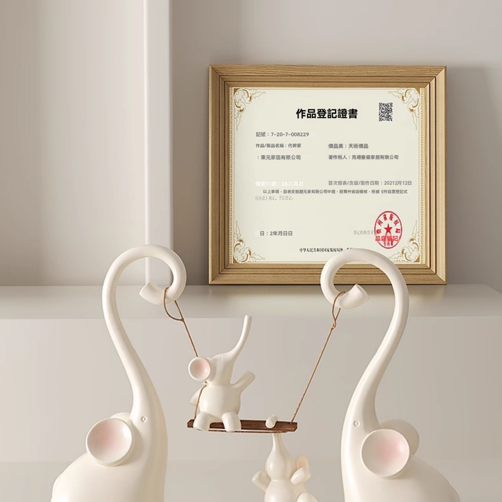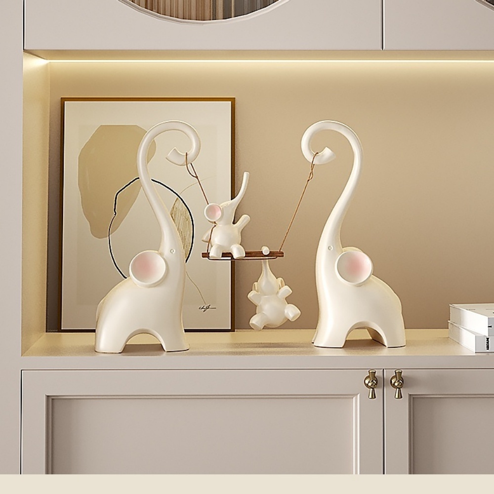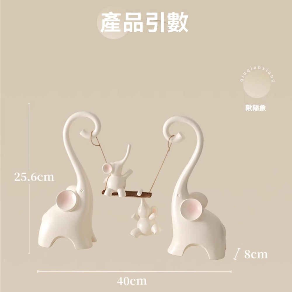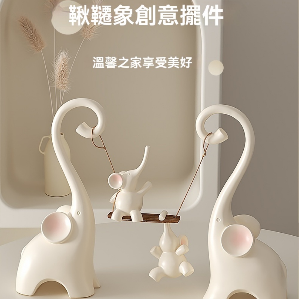 【超微米】壹家四口秋千大象桌面擺件 奶油風客廳玄關電視酒櫃擺件 新家喬遷禮物裝飾品(桌面擺件 如意吉象)