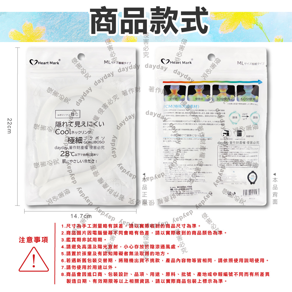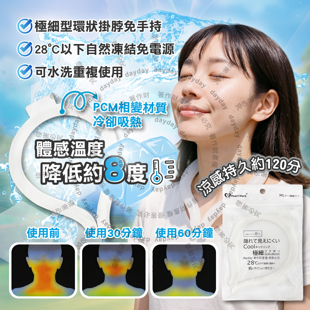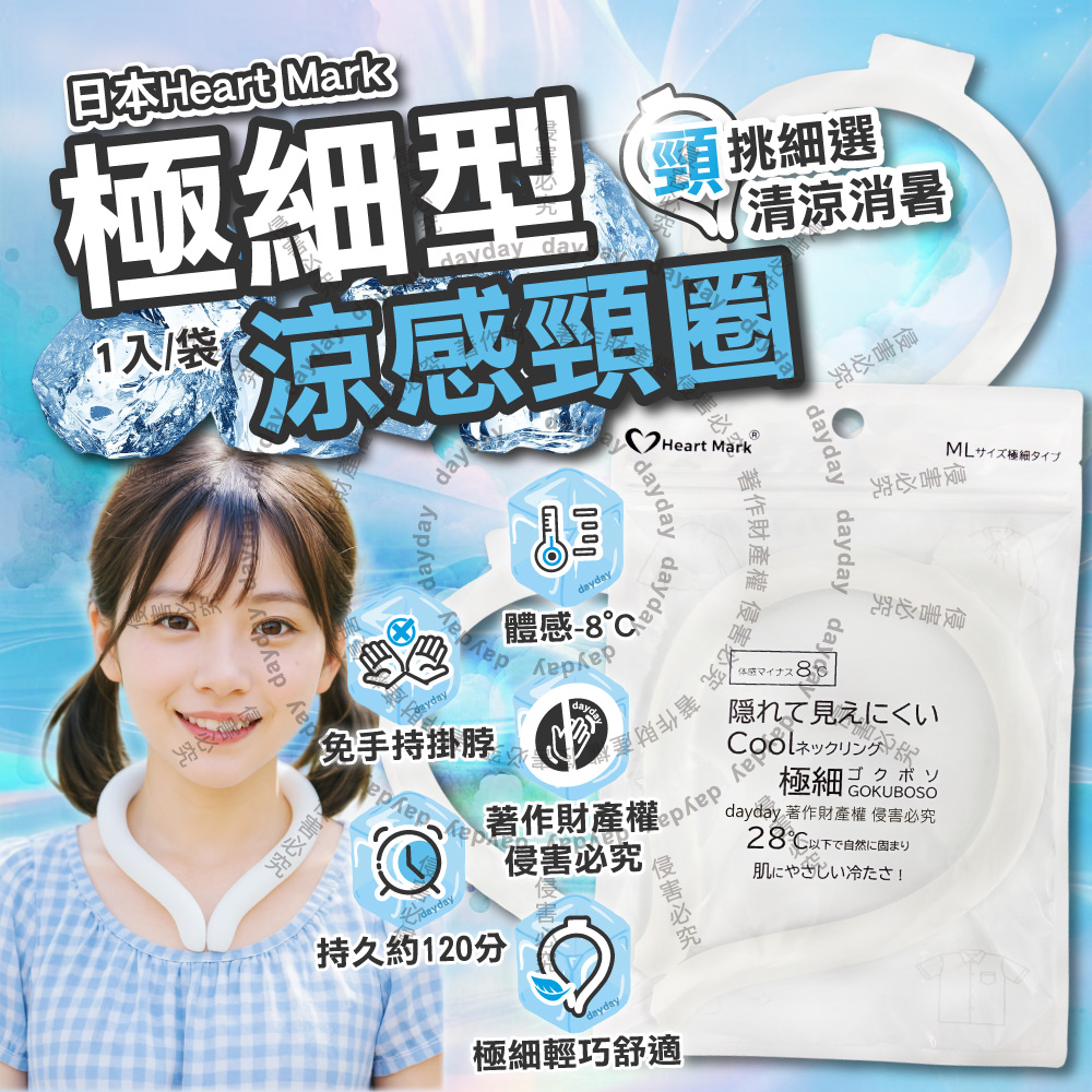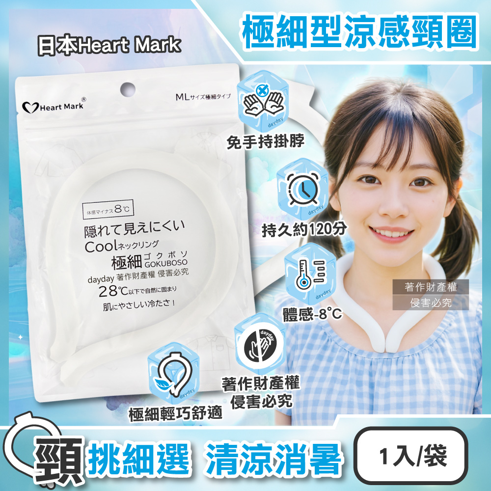 【日本Heart Mark】體感降溫約8°C可重複使用極細型掛脖涼感頸圈1入/袋(消暑冰敷頸環頸部舒適沁涼持久)