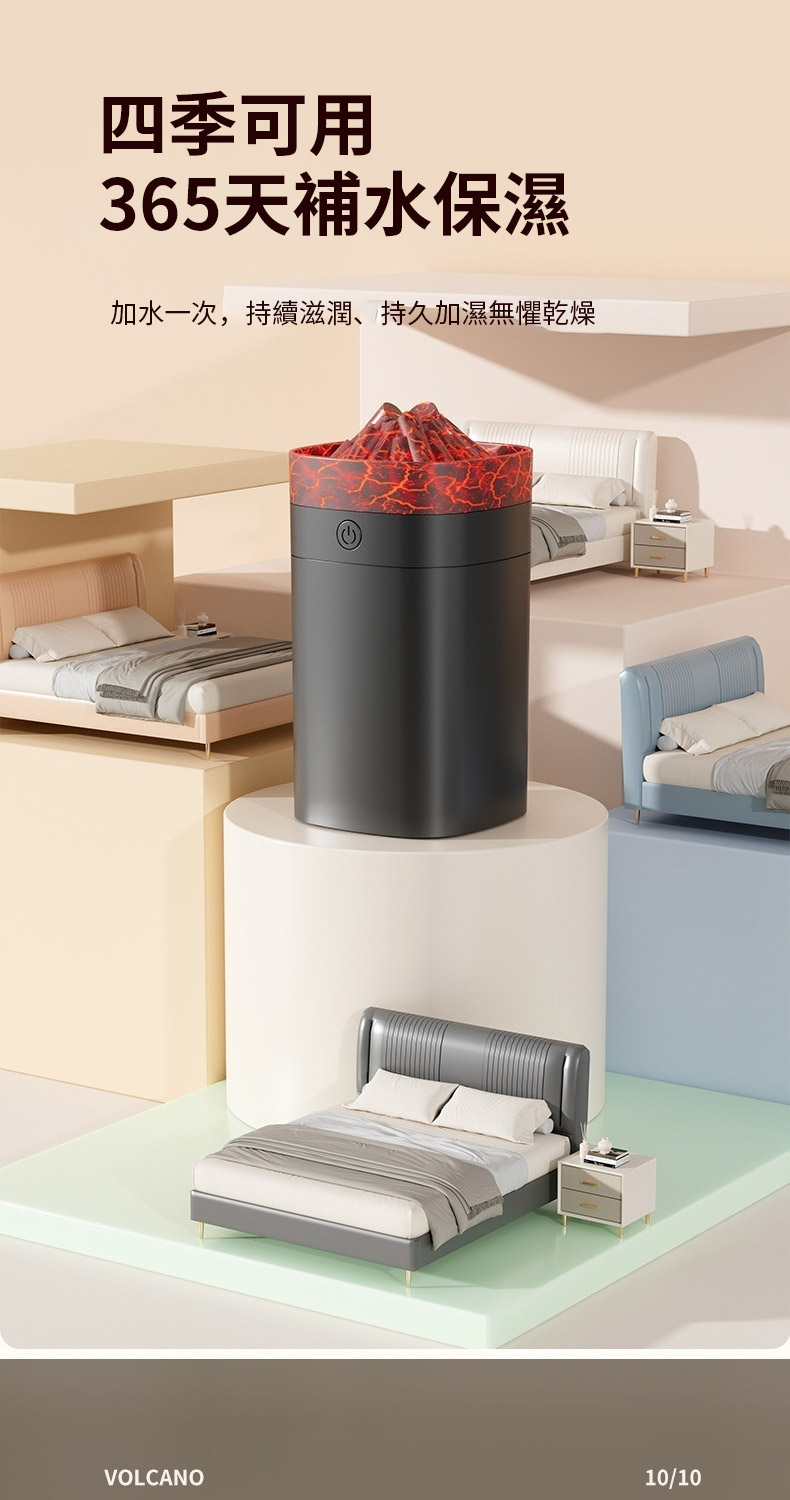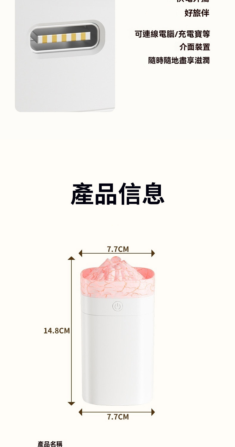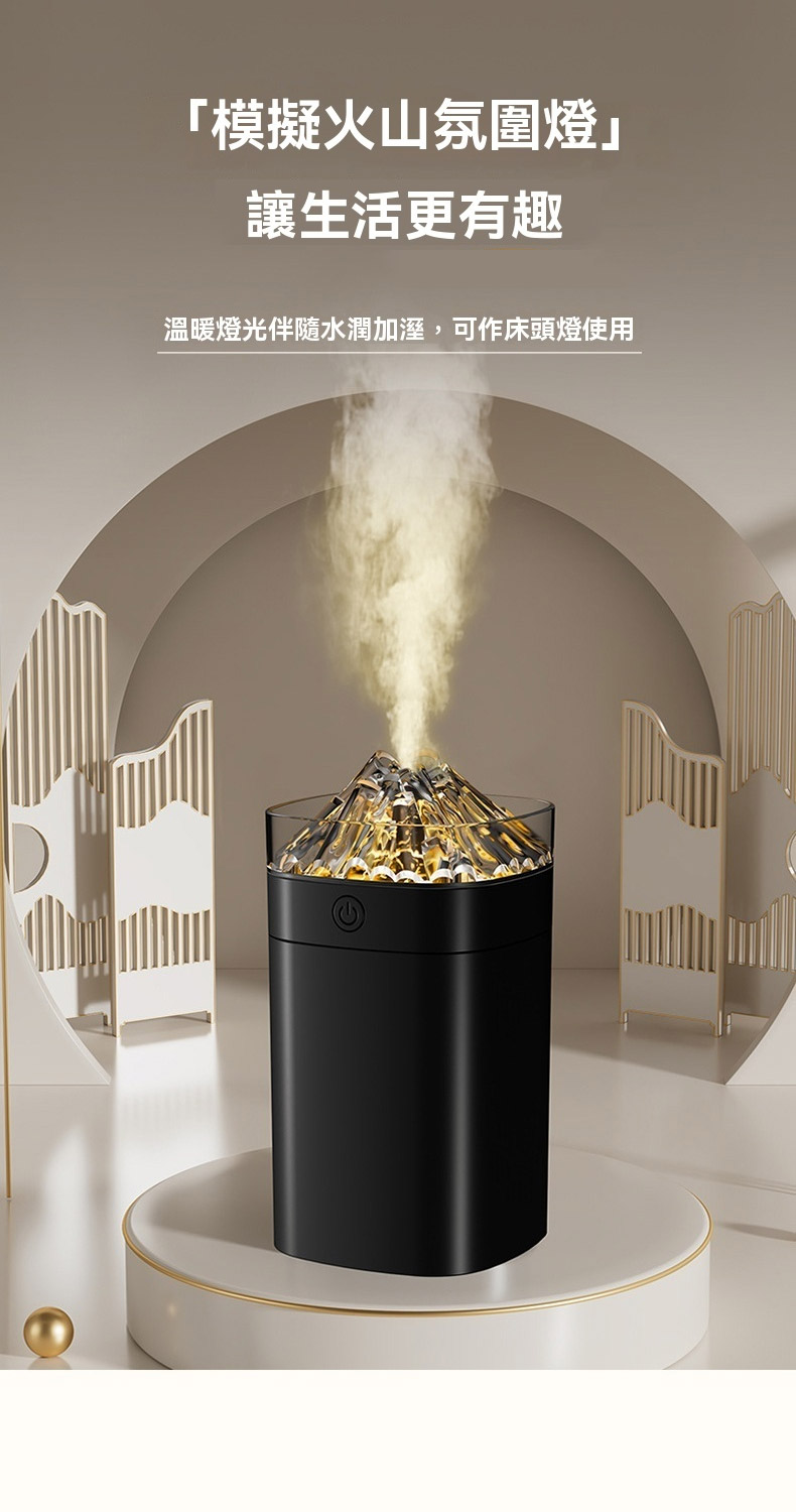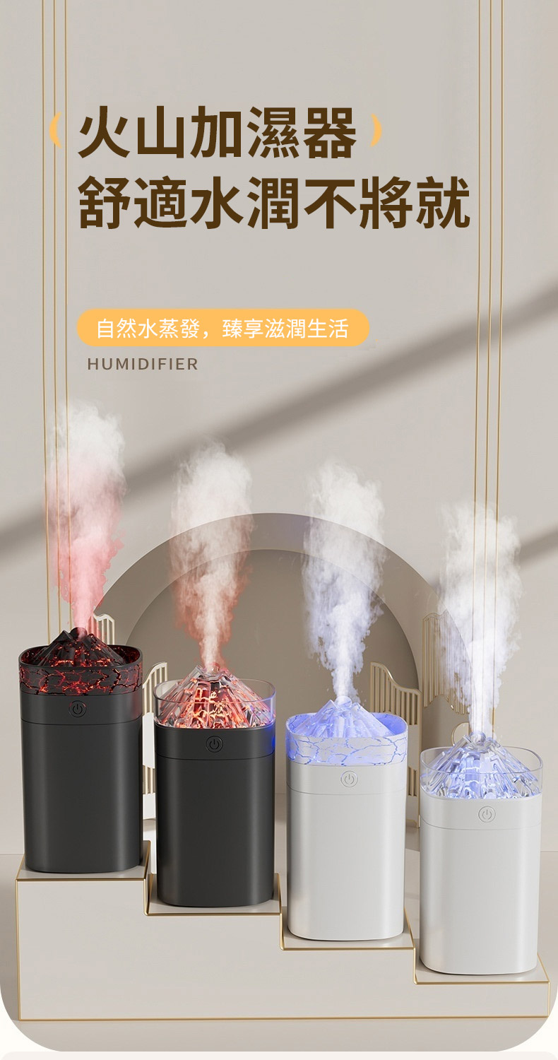 【Homeco】智能靜音小型加濕器 USB夜燈加濕器 臥室加濕機 納米霧化水氧機 空氣清淨機 仿真火山裂紋款 400ml