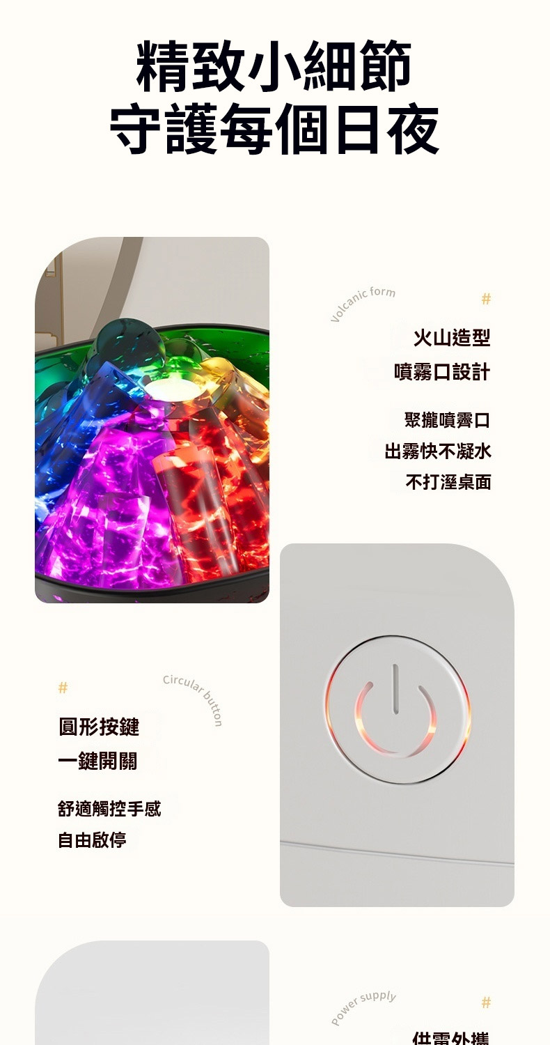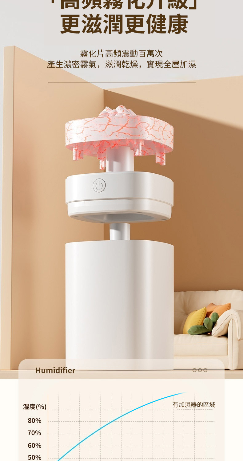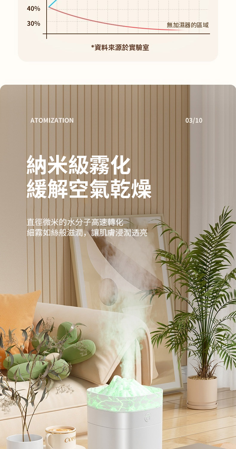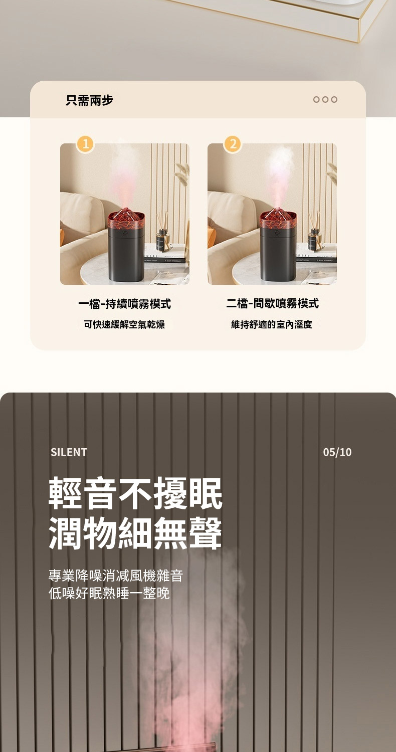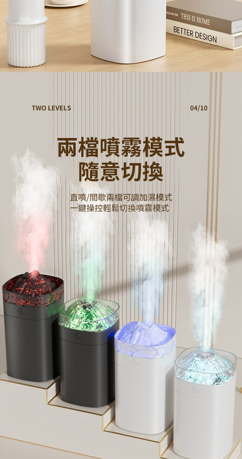 【Homeco】智能靜音小型加濕器 USB夜燈加濕器 臥室加濕機 納米霧化水氧機 空氣清淨機 仿真火山裂紋款 400ml