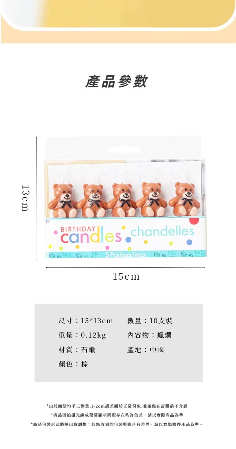 【可愛點睛】韓系小熊蠟燭10支裝(生日蠟燭 生日蛋糕 派對 祝福 慶生 節日 節慶 萬用蠟燭 造型蠟燭)