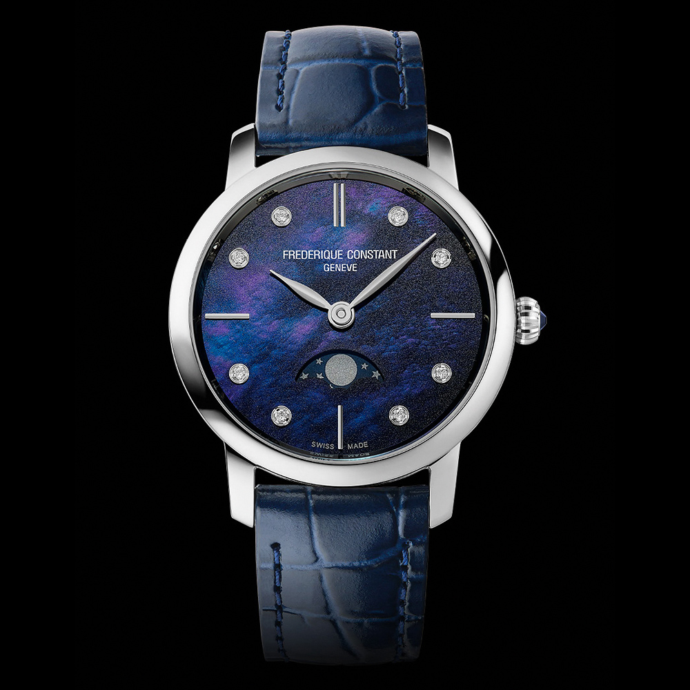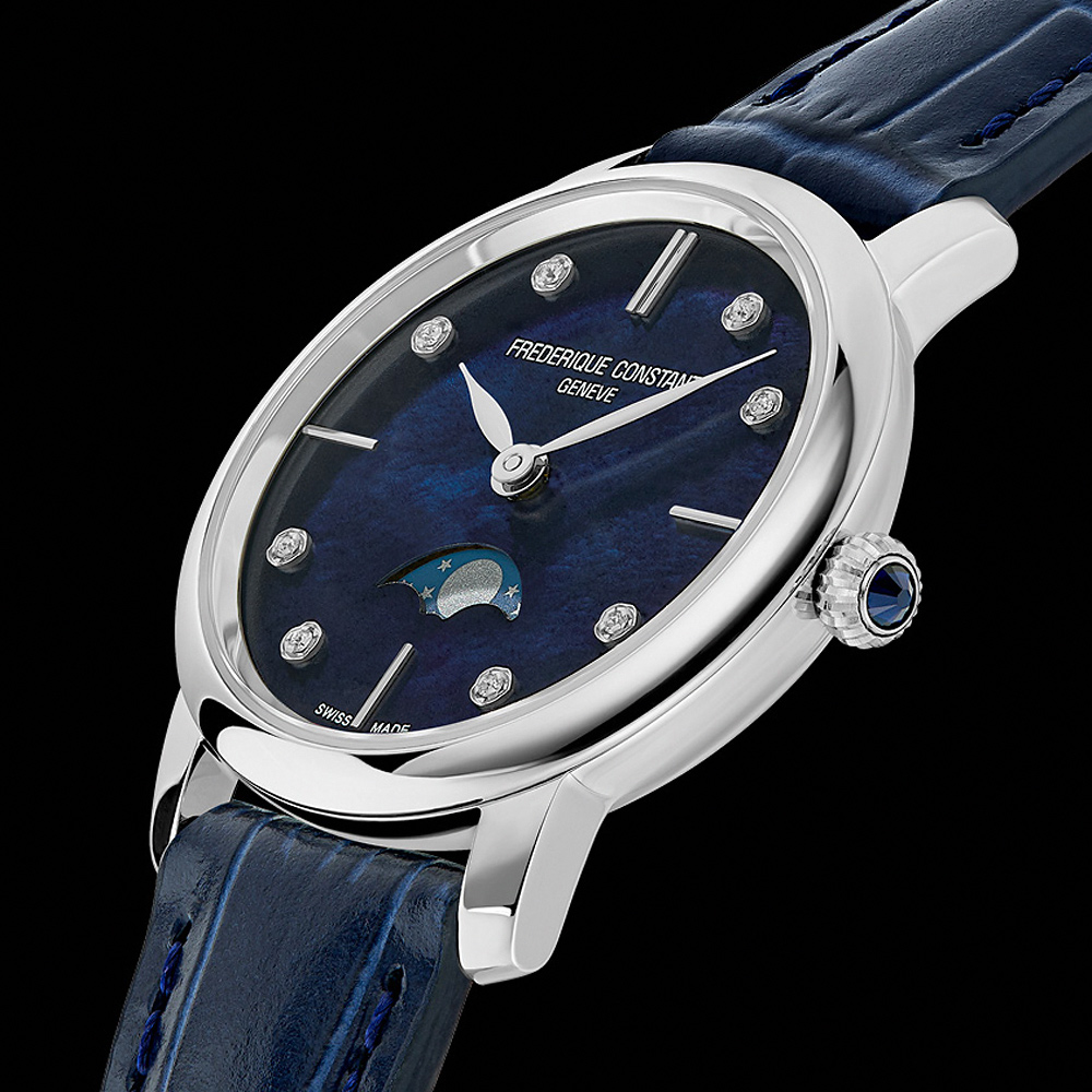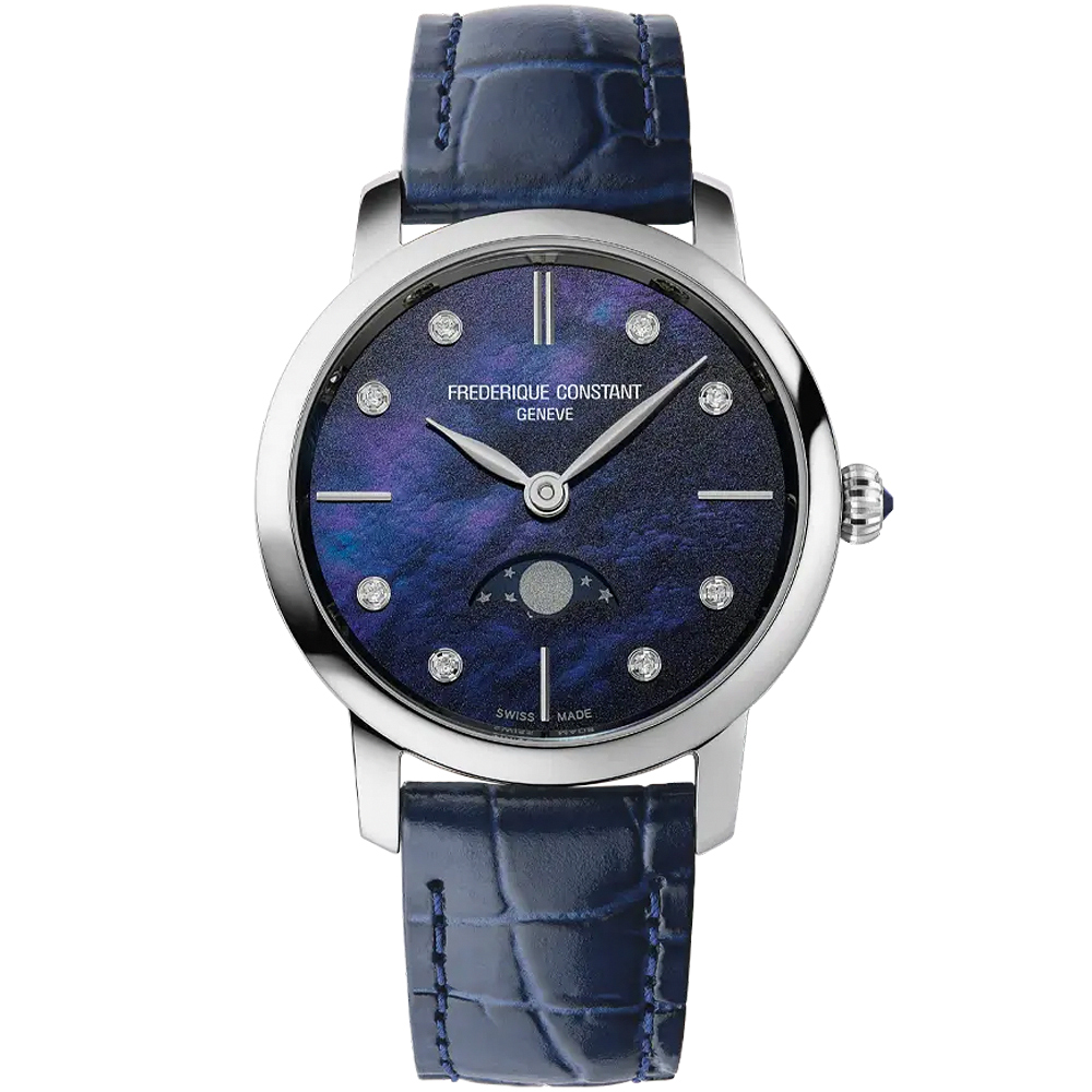 【CONSTANT 康斯登】Slimline 珍珠貝鑽石月相石英女錶 禮物 送禮 推薦(FC-206MPND1S6)