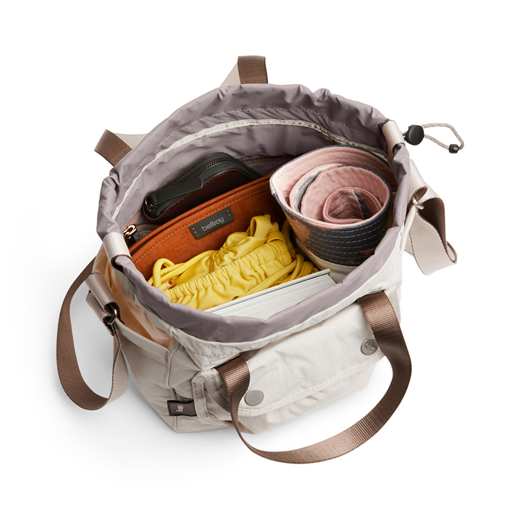 此包採用抽繩開合設計,只需拉緊抽繩並捏動鎖扣,就能方便且具有流暢的回彈感