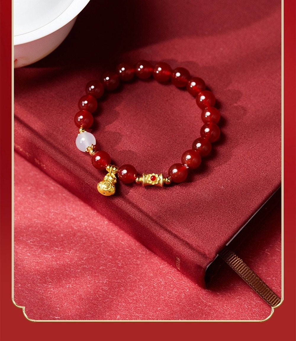 ✨ 商品尺吋:紅瑪瑙8MM、白玉髓8MM、福袋:1*0.8CM、竹節:長0.5*1.5CM、手圍約15~16CM(有彈性)