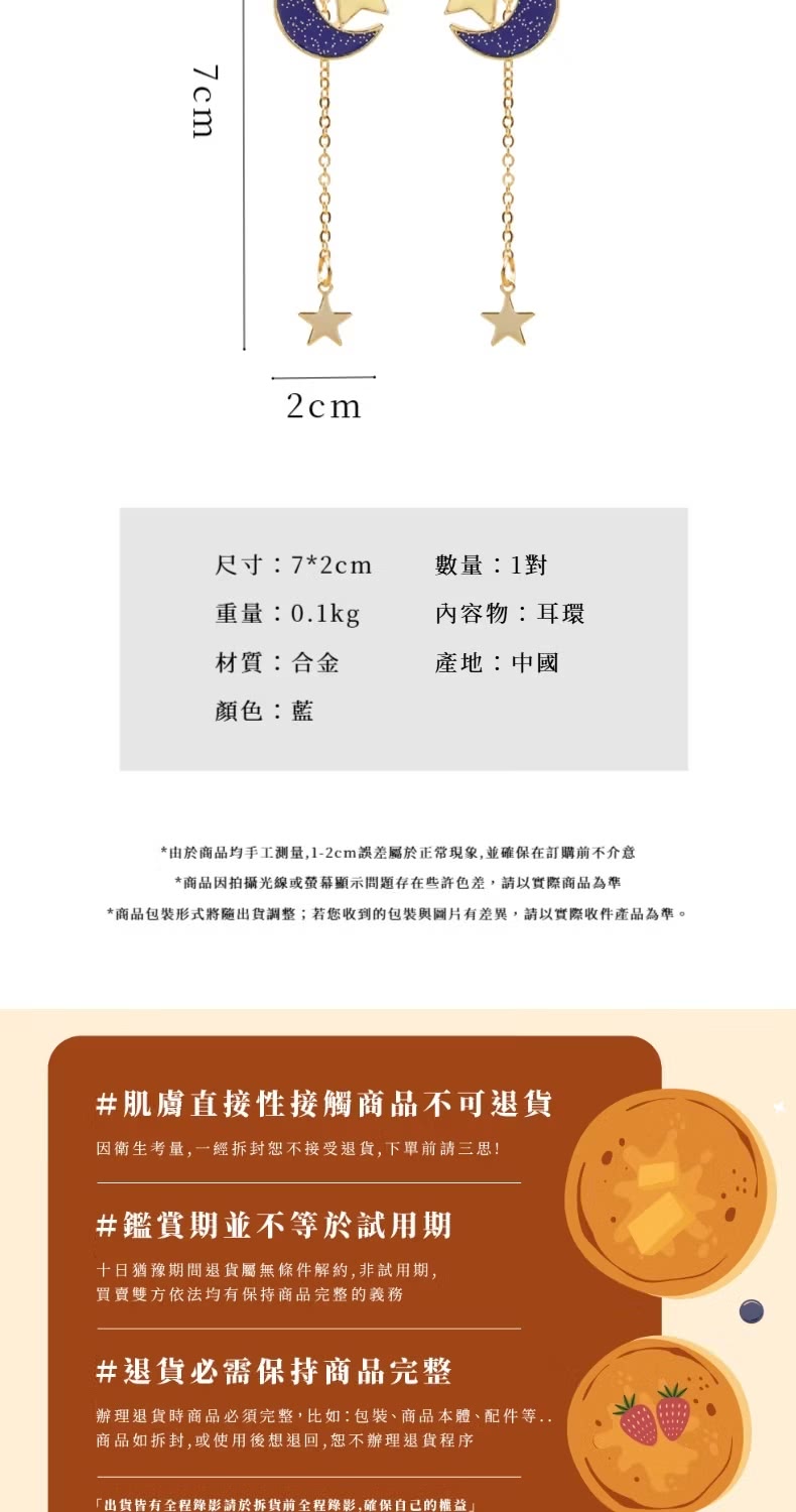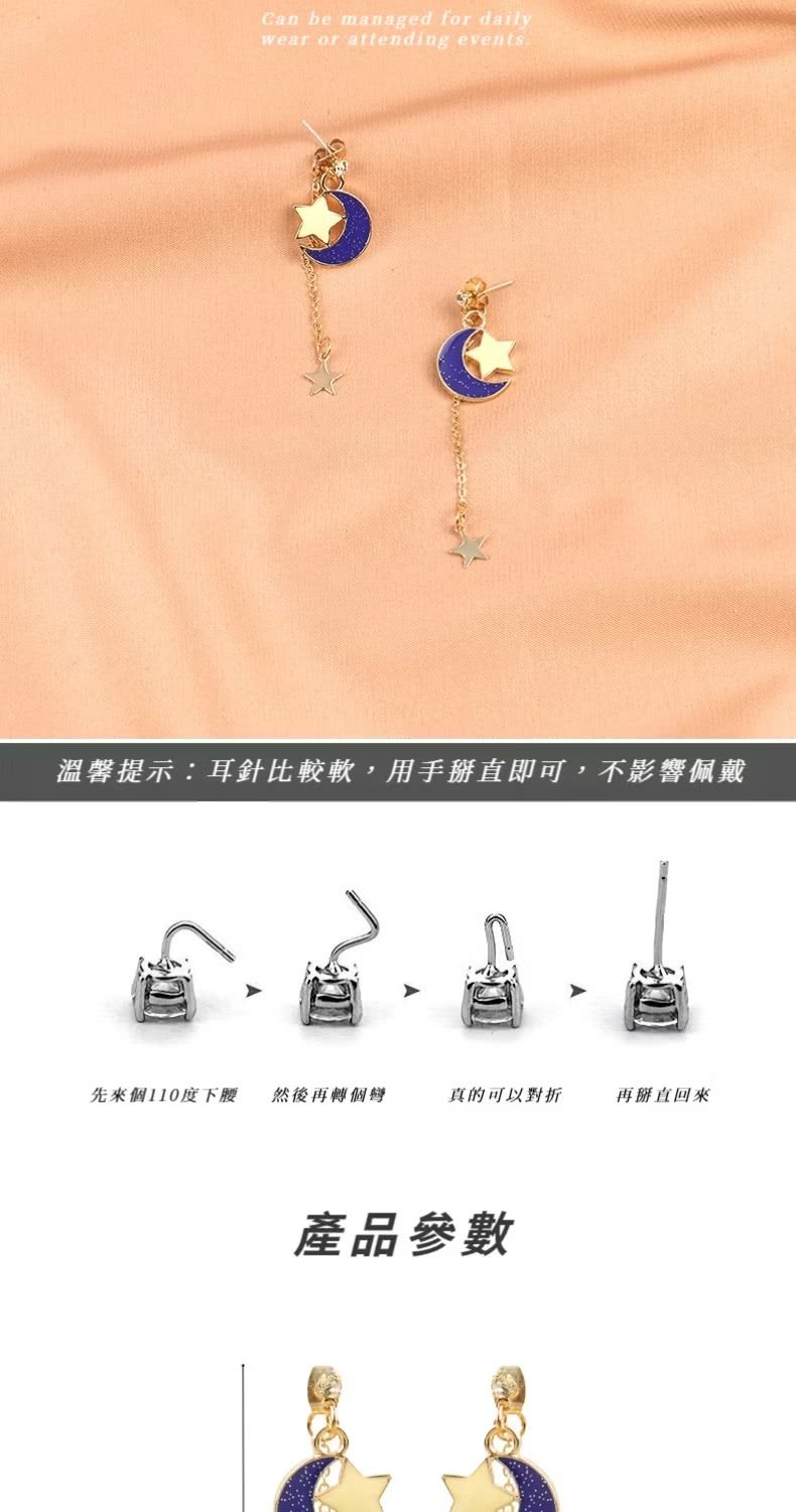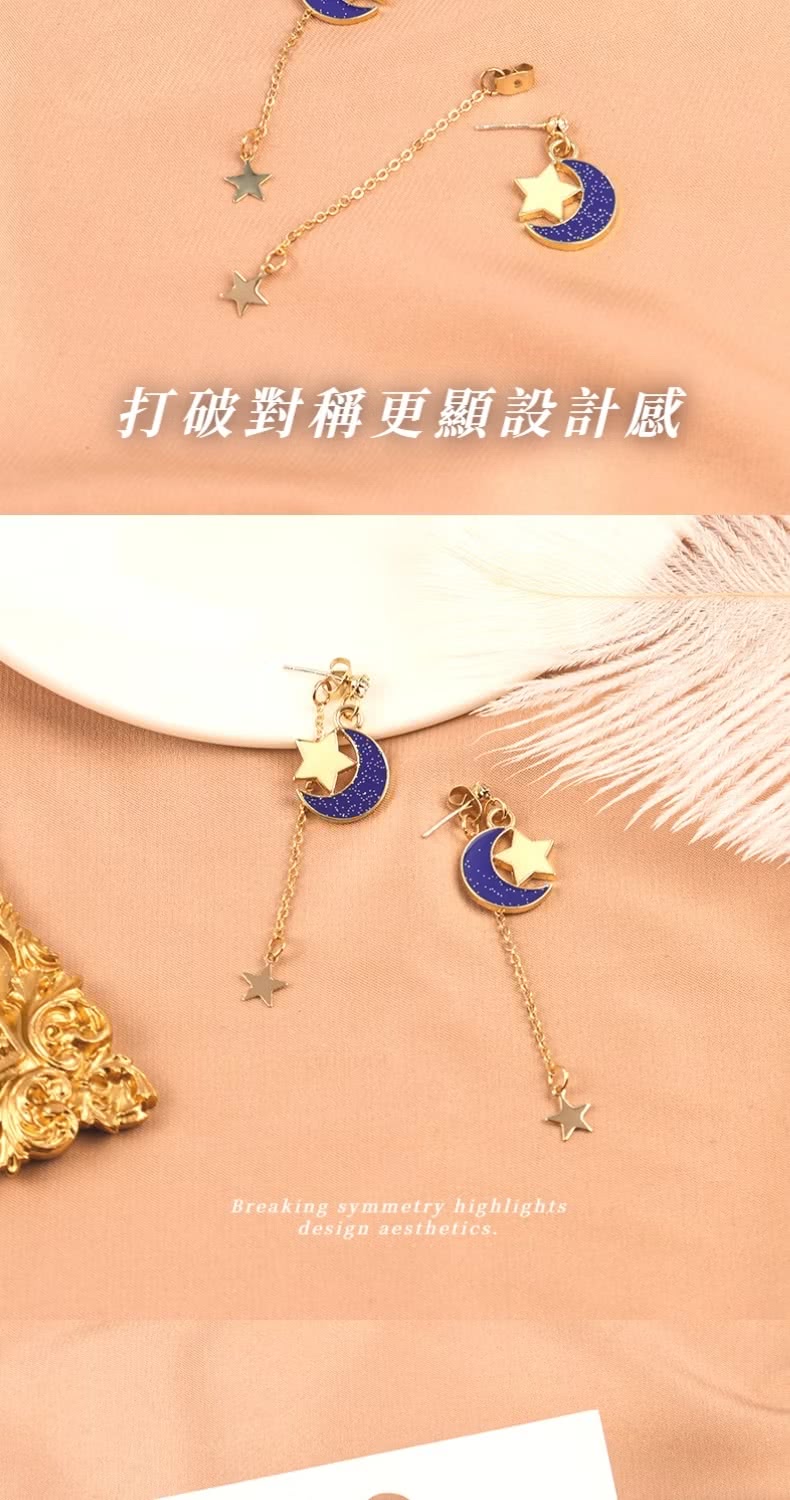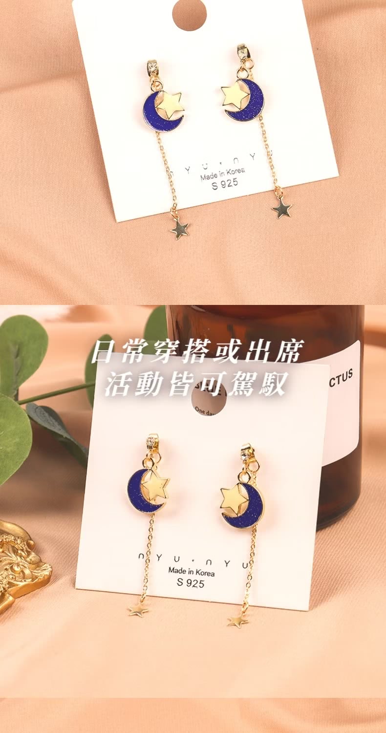 【浪漫星空】星星月亮垂墜耳環1對(簡約 耳飾 耳墜 飾品 耳針 耳釘 首飾 配件 禮物)