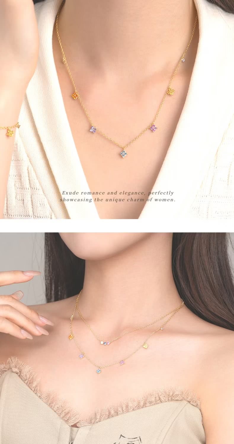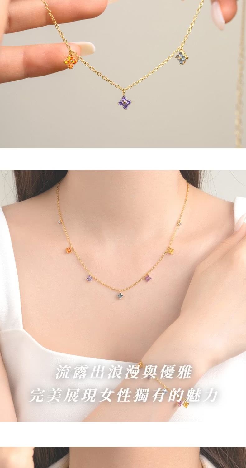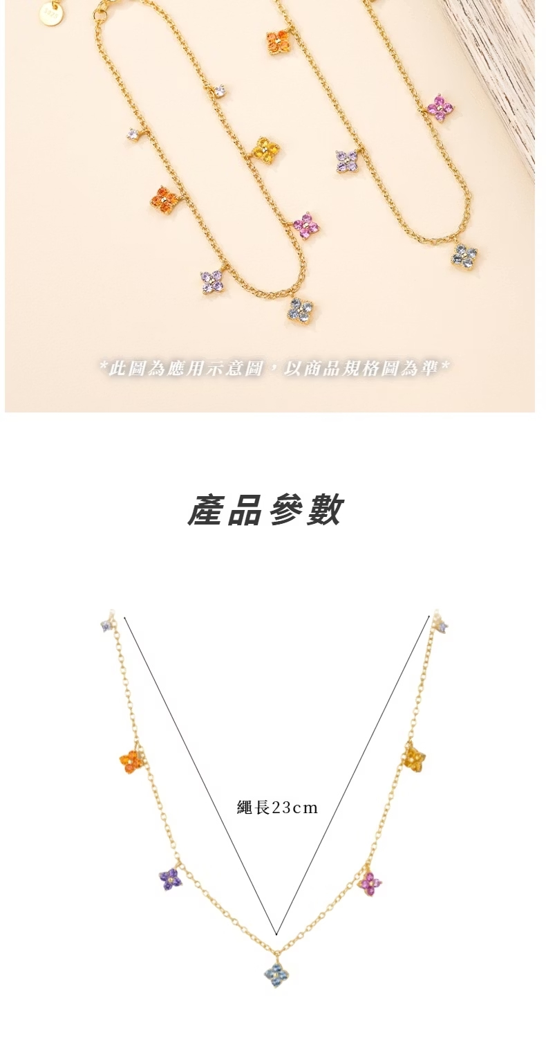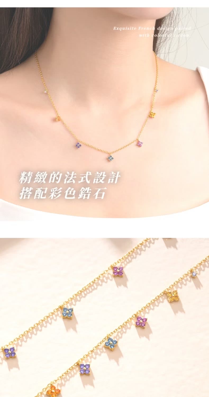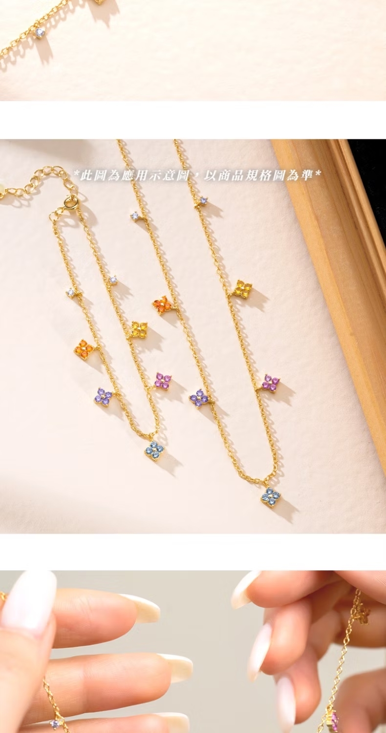 【幸運配飾】法式彩鋯石925純銀項鍊(多巴胺 彩色 彩鑽 四葉草 百搭 鎖骨鍊 飾品)