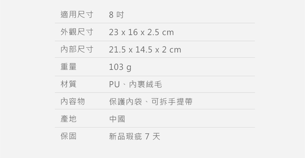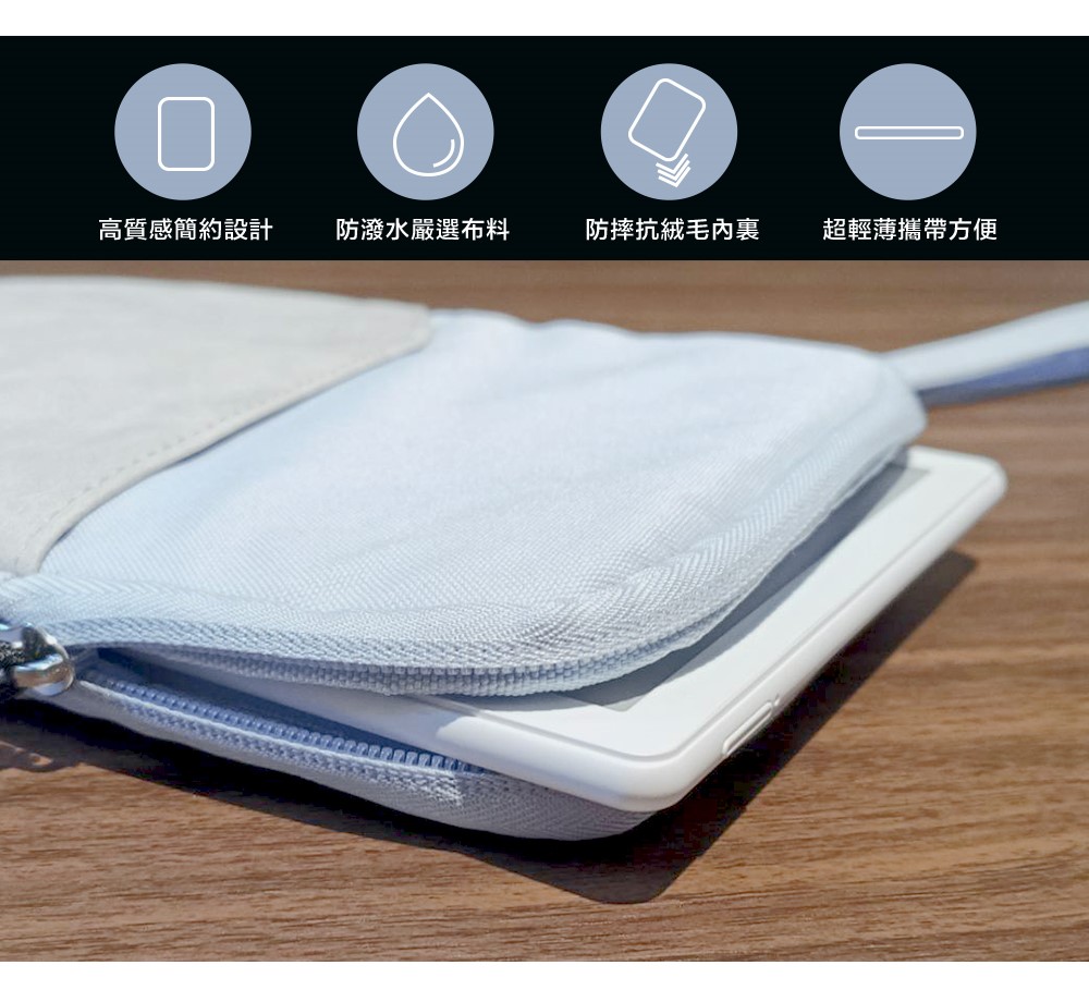 外層防摔抗震,扎實全面防護;內層柔軟細緻絨毛內裏,保護螢幕。包體輕盈,隨身攜帶無負擔,陪你輕鬆旅行出遊。