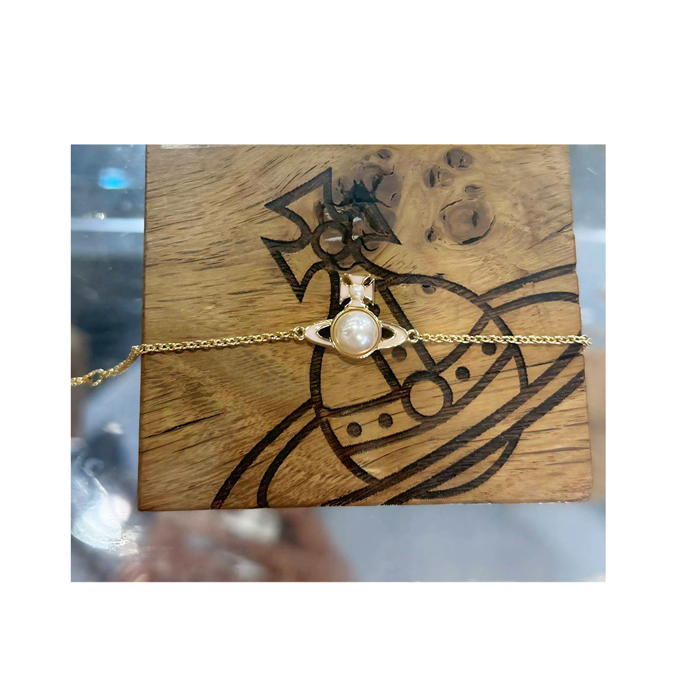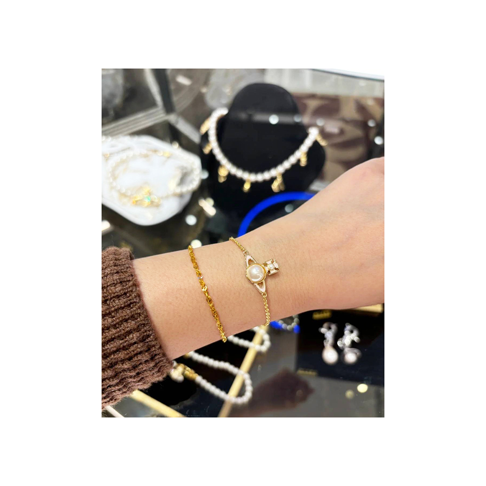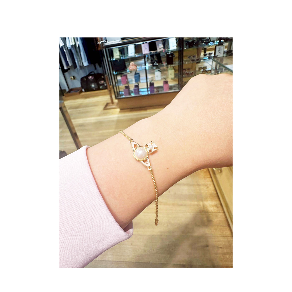【Vivienne Westwood】Vivienne Westwood 珍珠搭配粉色星球金色手鍊(附原廠紙盒紙袋)