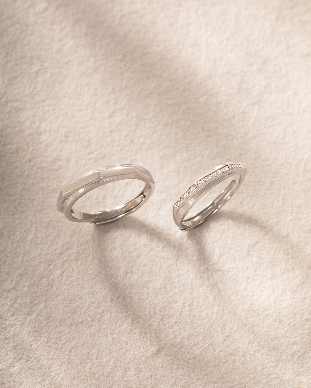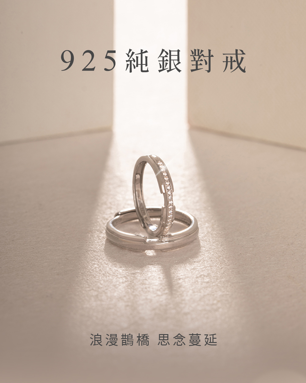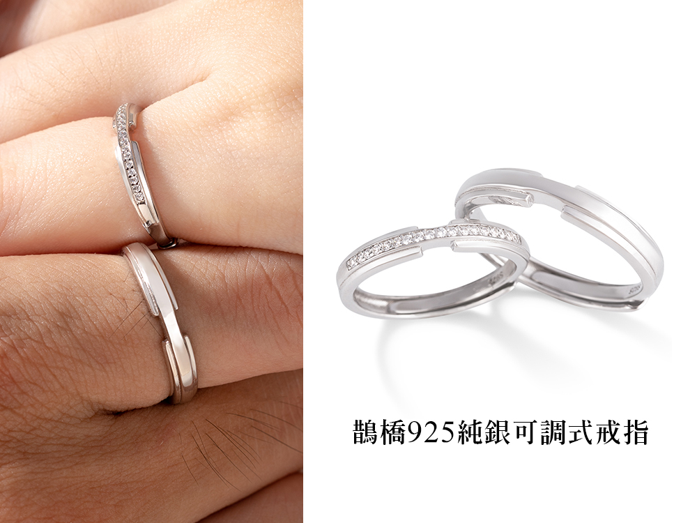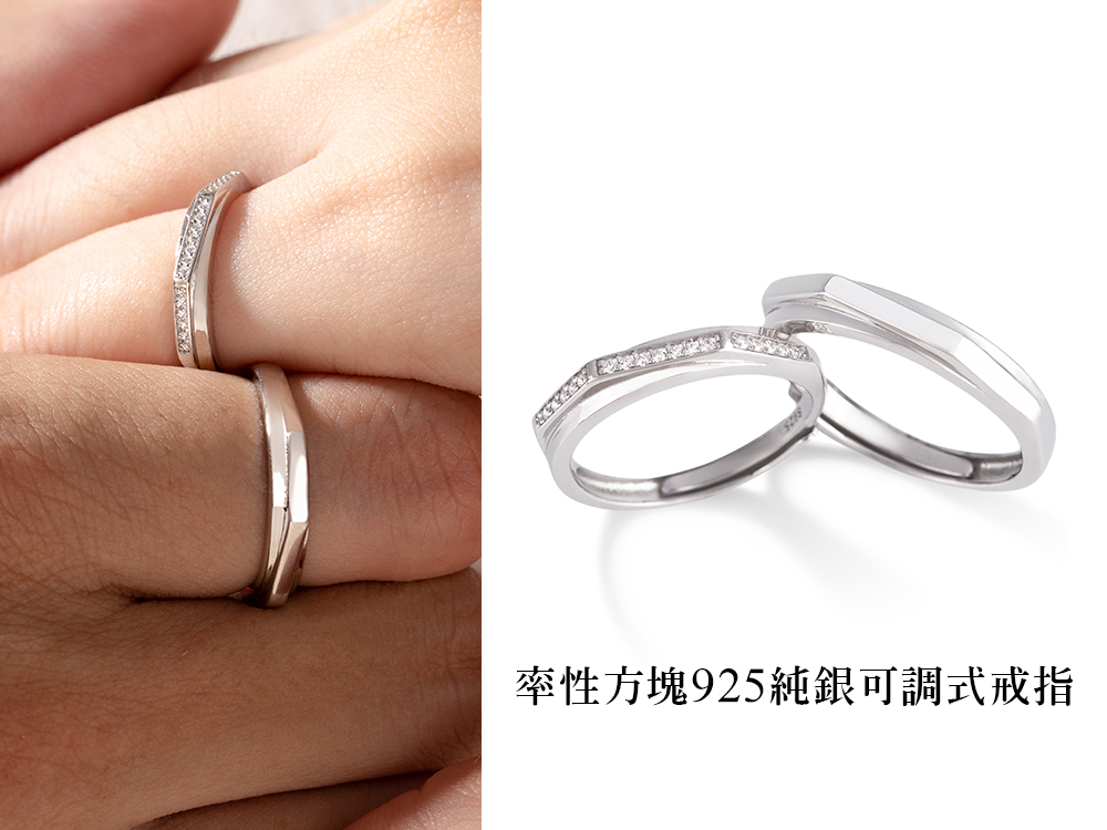 【MARIGOLD 美爾朵】情侶對戒|鵲橋率性方塊925純銀可調式情侶戒指(情侶禮物/情人節禮物/送男友/送女友)
