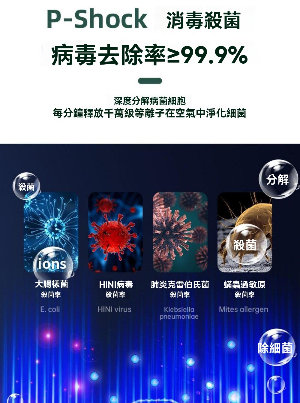 每分鐘釋放千萬級負離子,有效除菌除甲醛