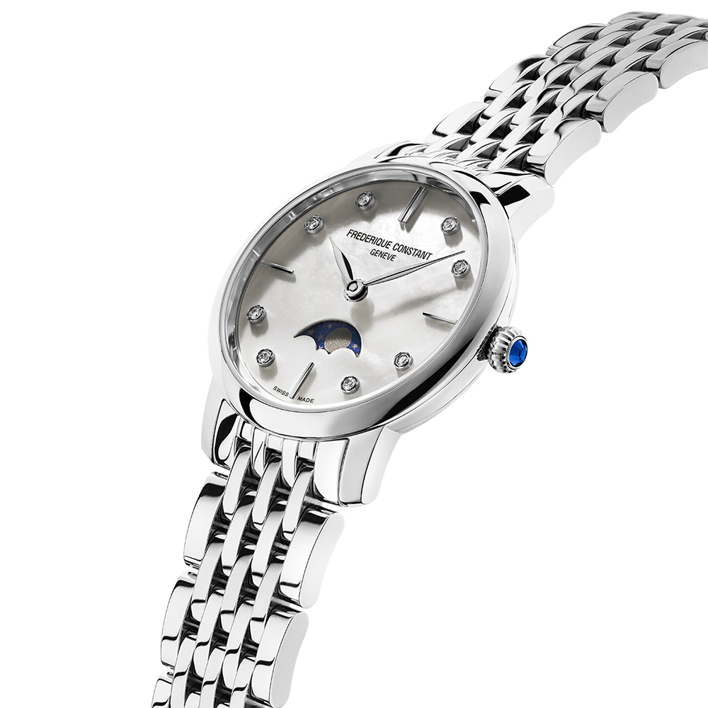 【CONSTANT 康斯登】Slimline 真鑽月相石英女錶 禮物 送禮 推薦(FC-206MPWD1S6B)