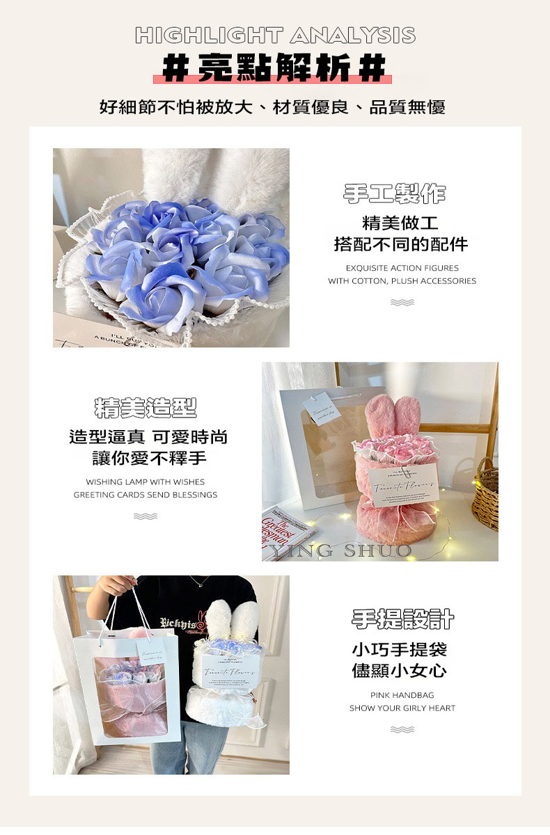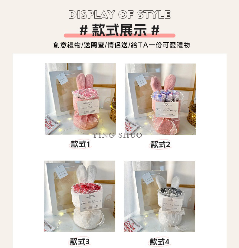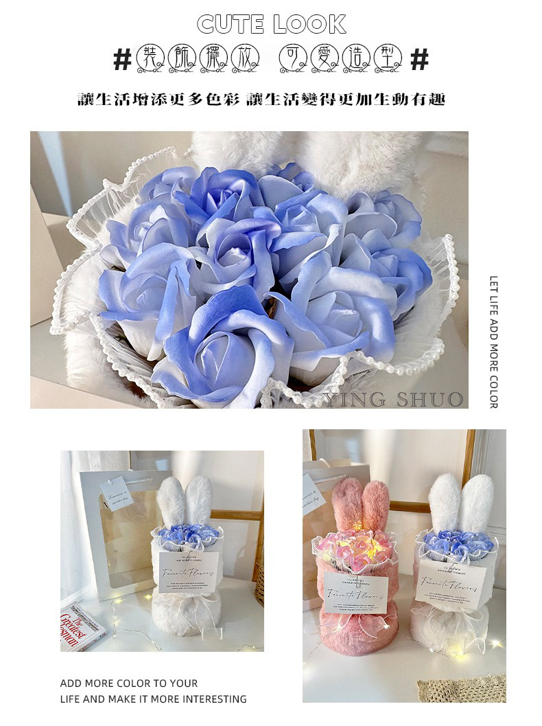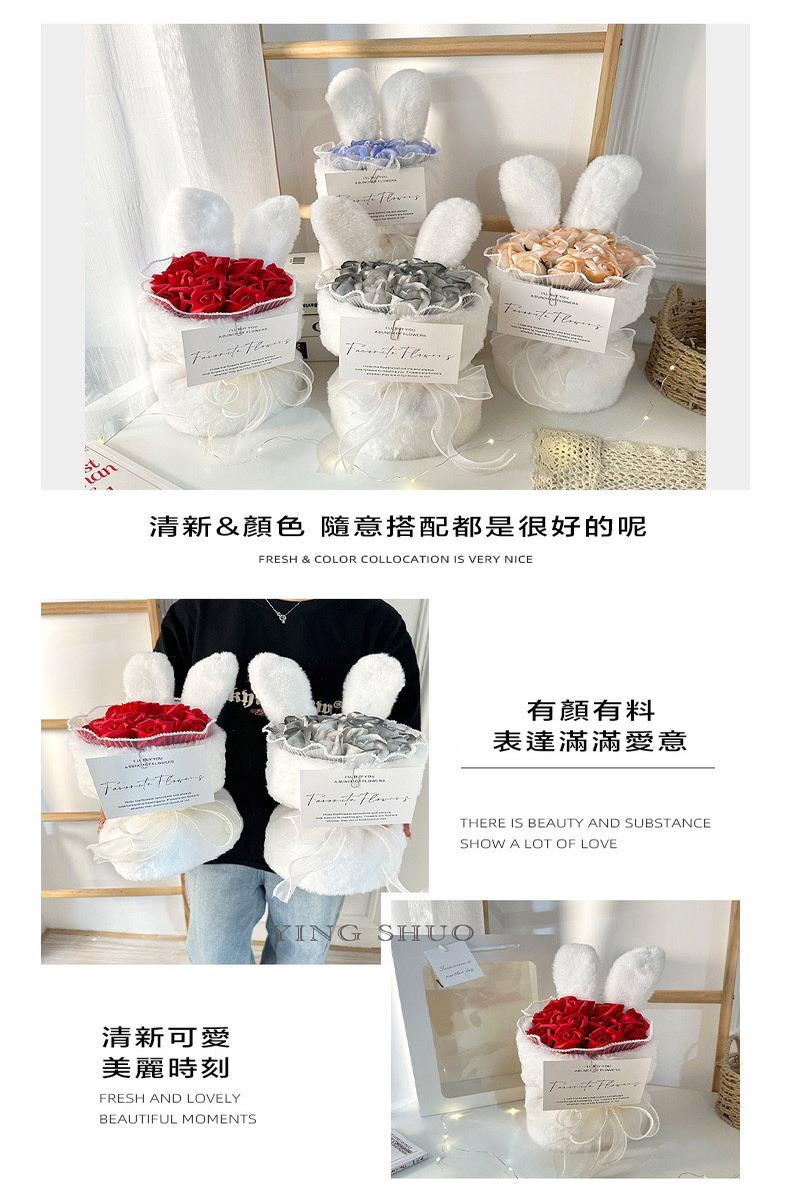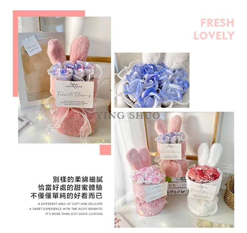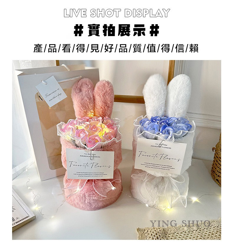 【YING SHUO】韓式兔耳小香風永生不凋花束(玫瑰香皂花束 情人節禮物 告白 求婚 紀念日 畢業 儀式感必備)