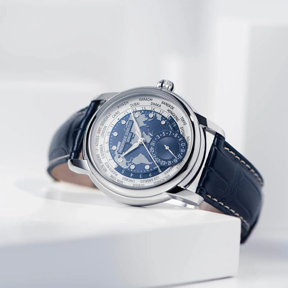 Classics Worldtimer Manufacture百年經典世界時區自製機芯腕錶誕生於2012年,是Frederique Constant康斯登最暢銷的作品之一,在腕錶界備受讚譽。它的傳奇故事延續之今。值該腕錶誕生10週年之際,品牌推出與眾不同的限量版腕錶:不鏽鋼錶款,限量1,888只。致敬旅行藝術和對世界的探索,傾情演繹品牌從荷蘭到香港、再到瑞士的精彩歷史。