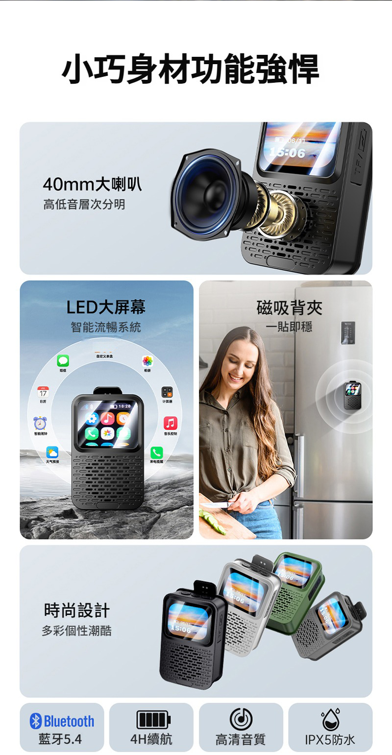 【ANTIAN】可穿戴式智能重低音藍牙喇叭 室外導遊喇叭 便攜揚聲器 無線音響 擴音器