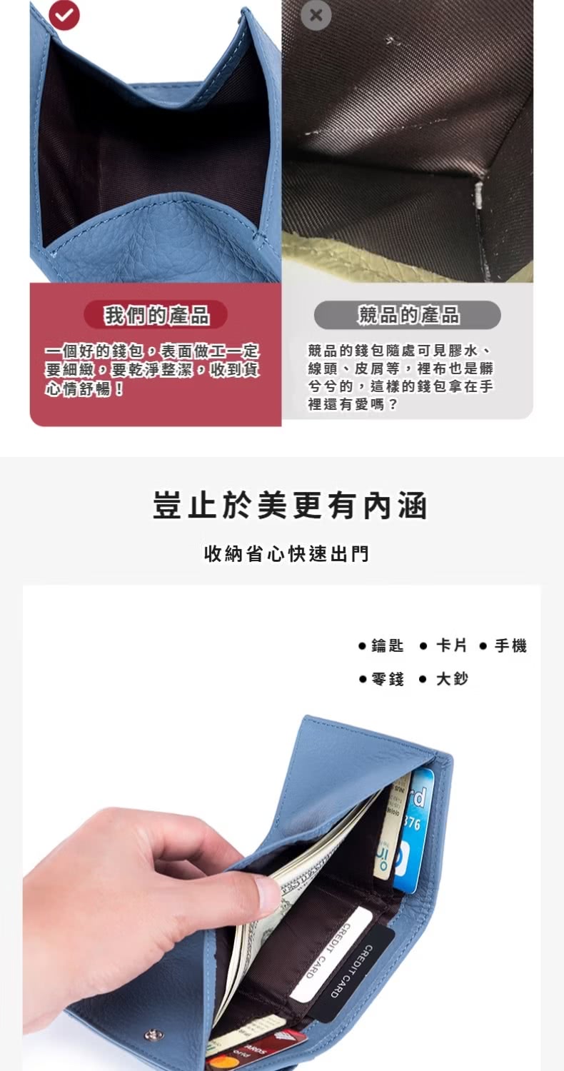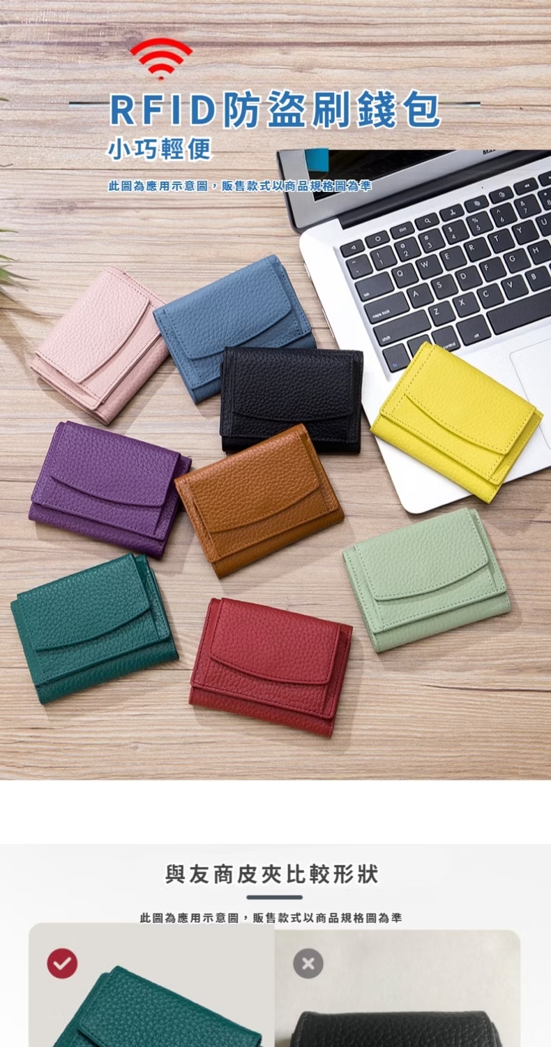 【小巧好裝】日系真皮RFID防盜刷短夾(錢包 皮夾 皮包 名片夾 素色 頭層牛皮 禮物 零錢包 多分層)