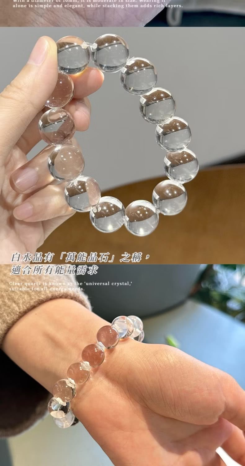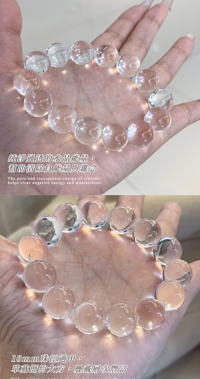 【純淨無瑕】純淨白水晶串珠手串10mm(天然 冰透 顯白 高級 手珠 手鍊 手環 飾品 配件)