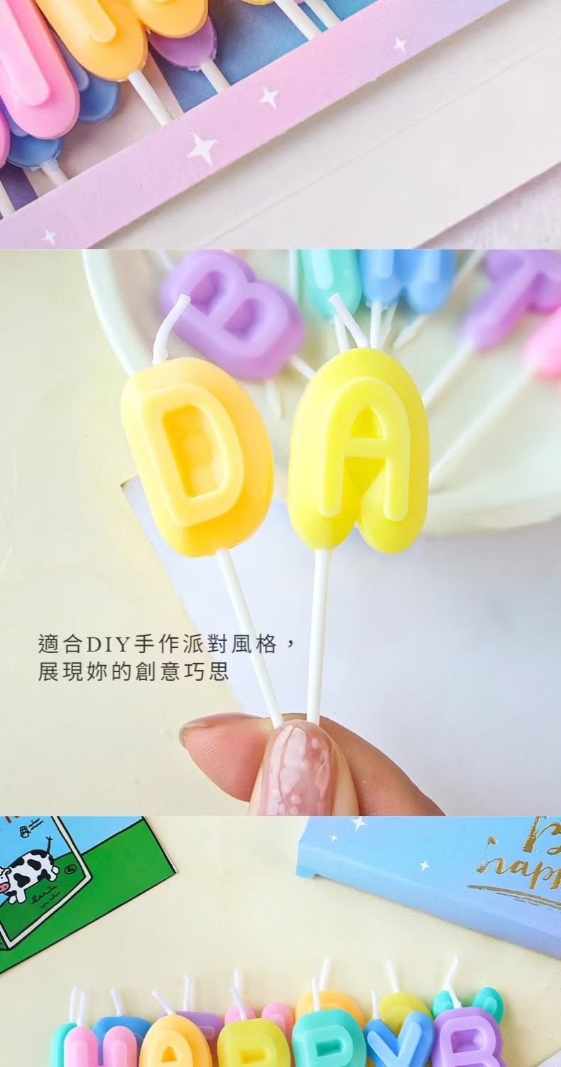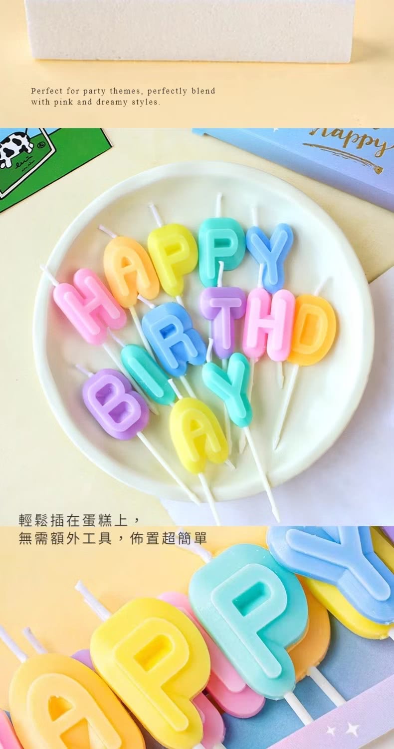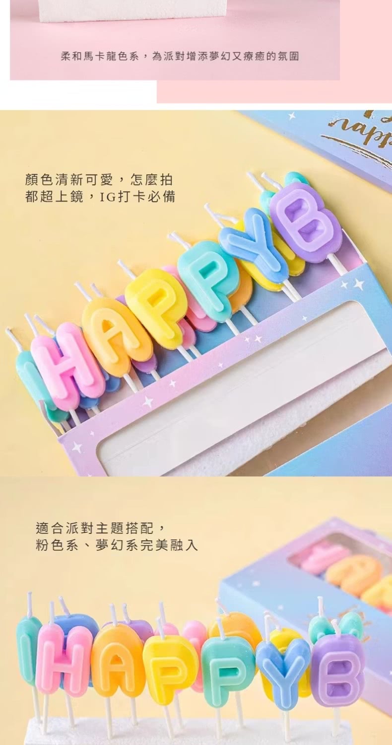 【可愛少女】馬卡龍色生日字母蠟燭2組入(生日蠟燭 烘焙 生日快樂 派對 拍照道具 插牌 許願 蛋糕裝飾)