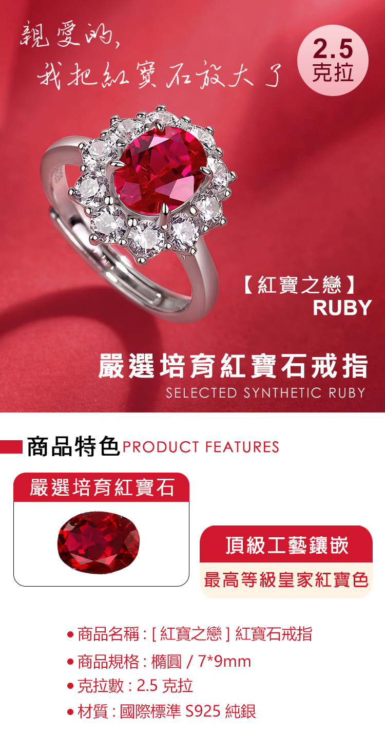 【CF鑽飾】女戒 培育紅寶石《紅寶之戀》雙11限定情人節(2.5克拉 鑽戒 戒指 禮物 生日)
