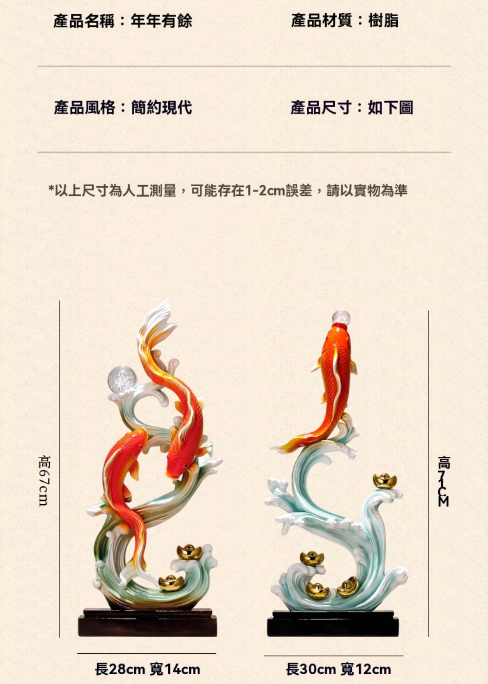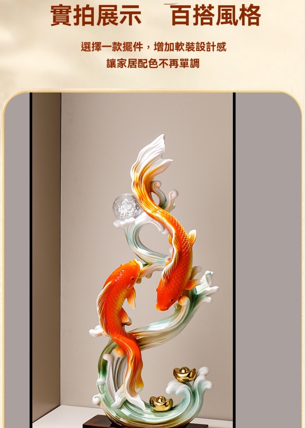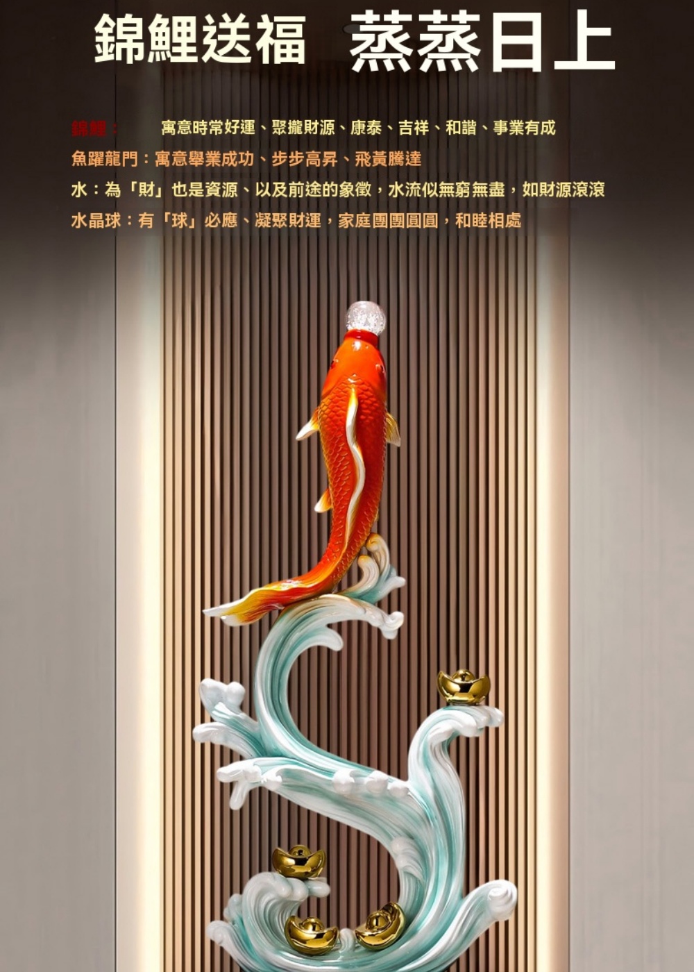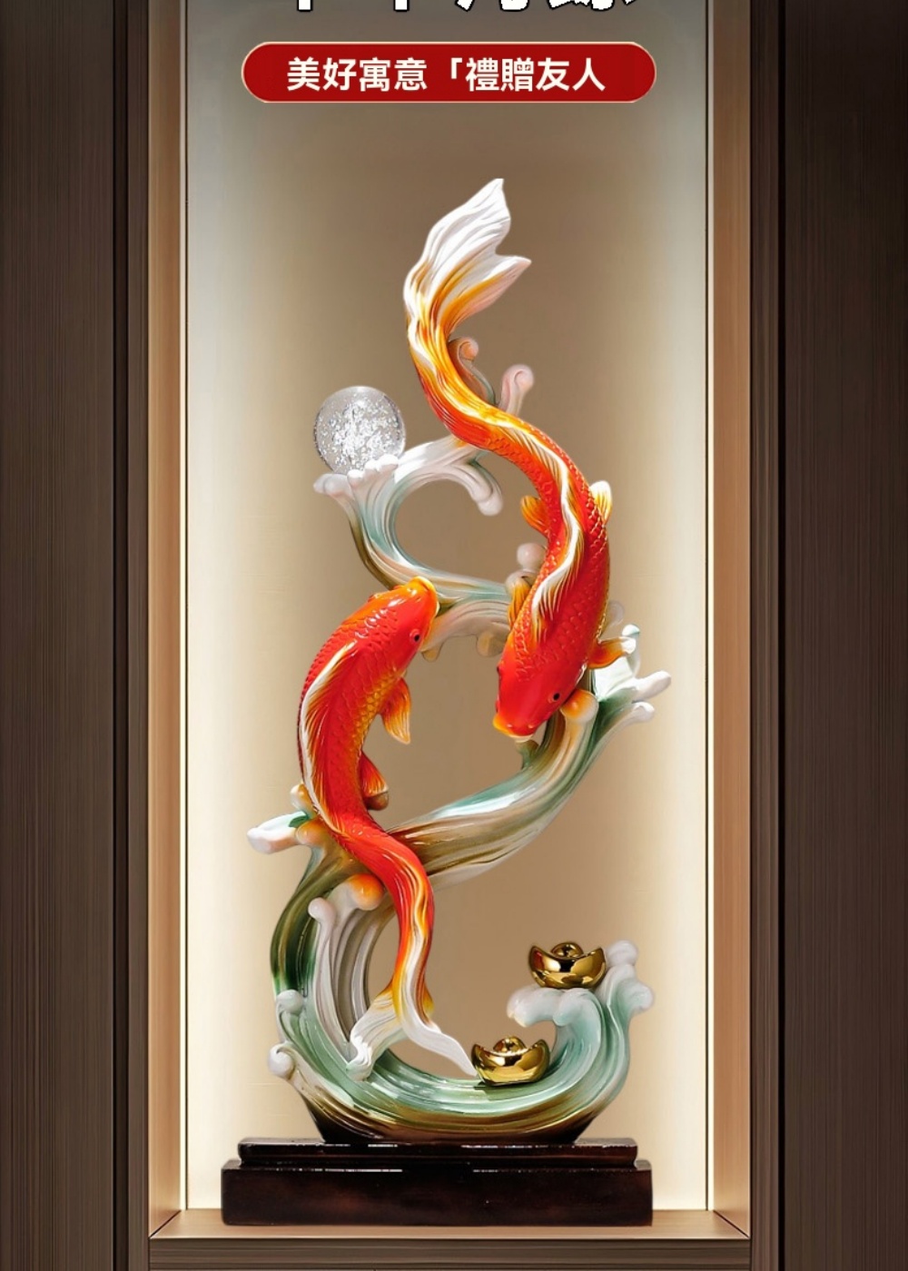 【巨匠】入戶玄關擺件 年年有余擺件 辦公室桌面擺飾 電視櫃裝飾擺件 開業喬遷禮物(30*12*71CM招財擺件)