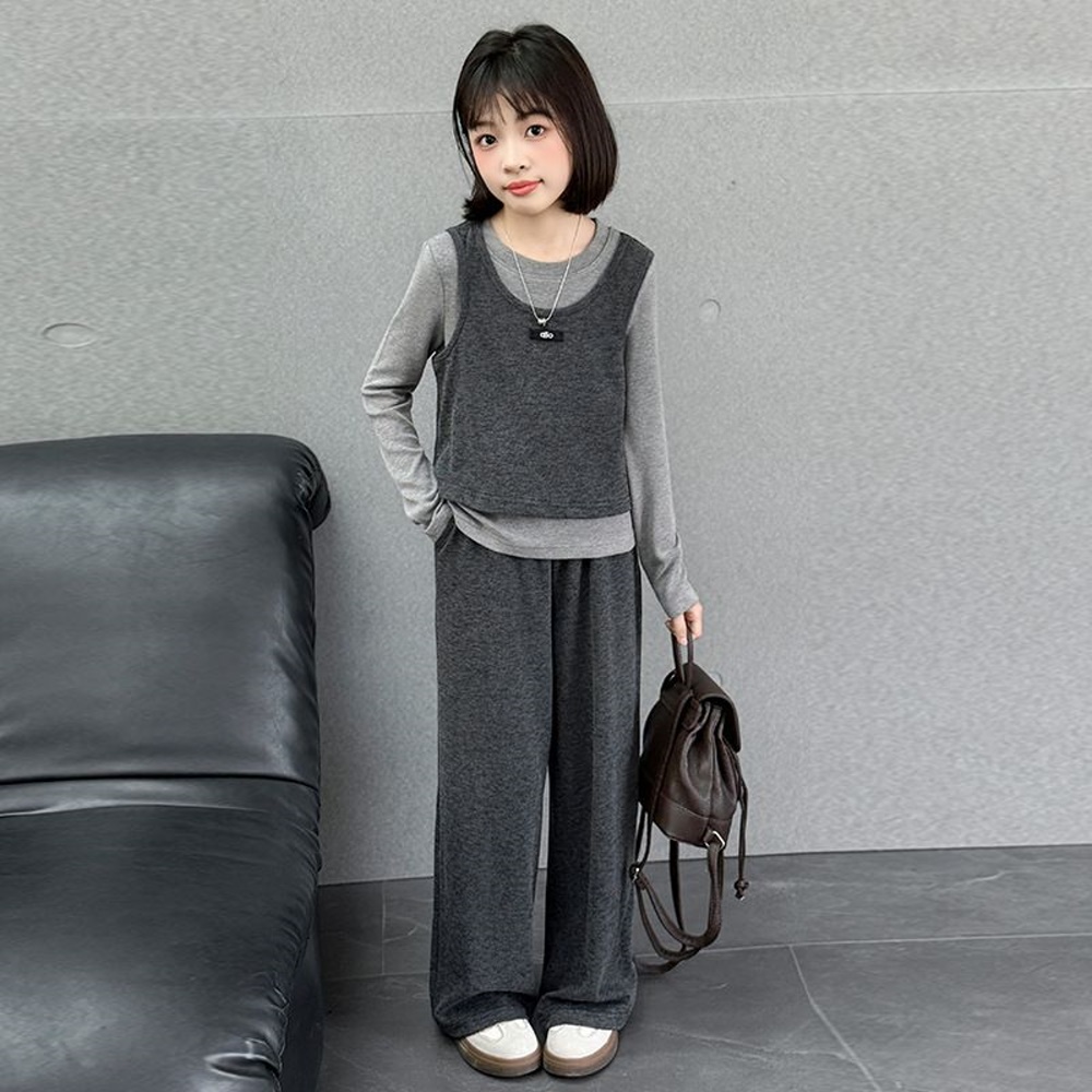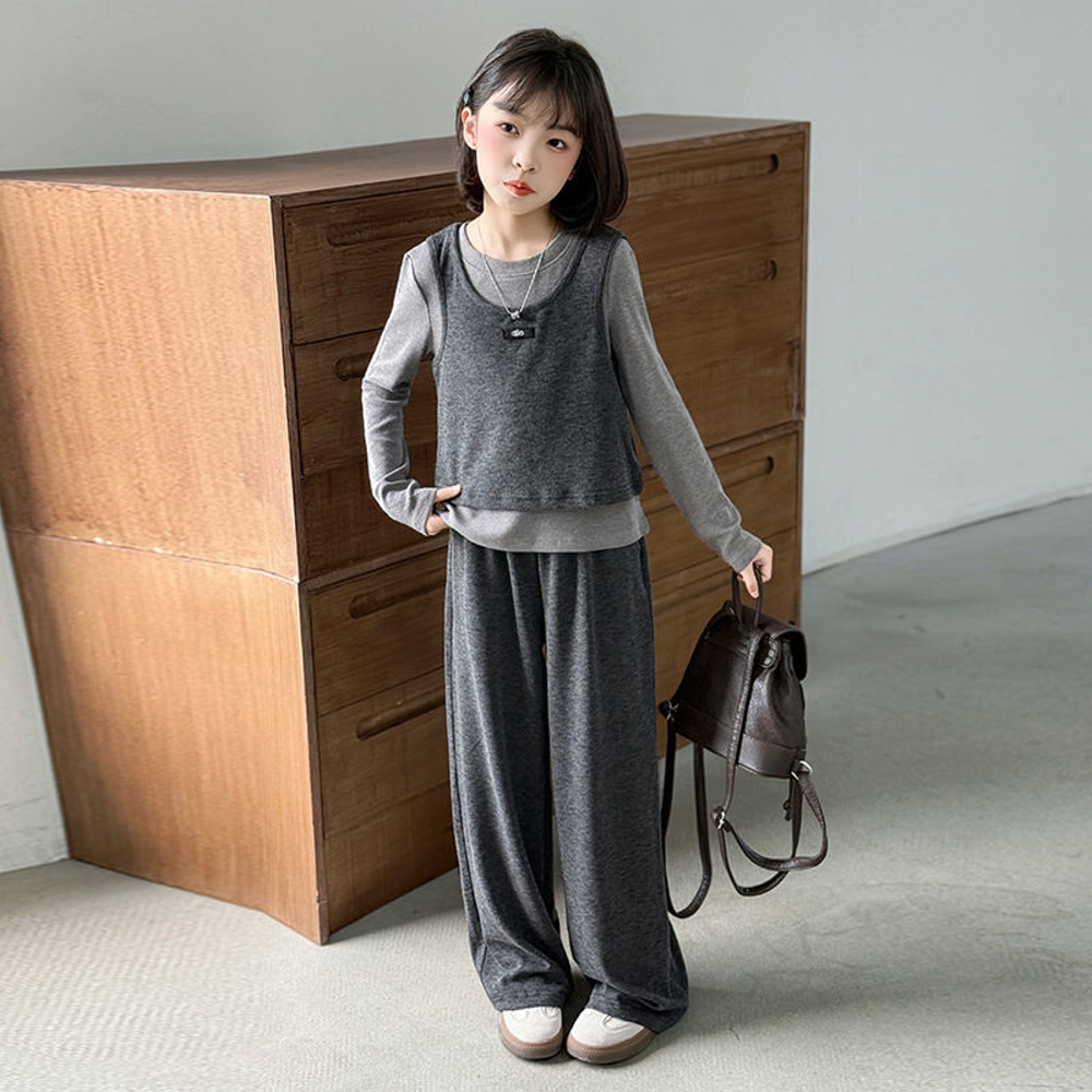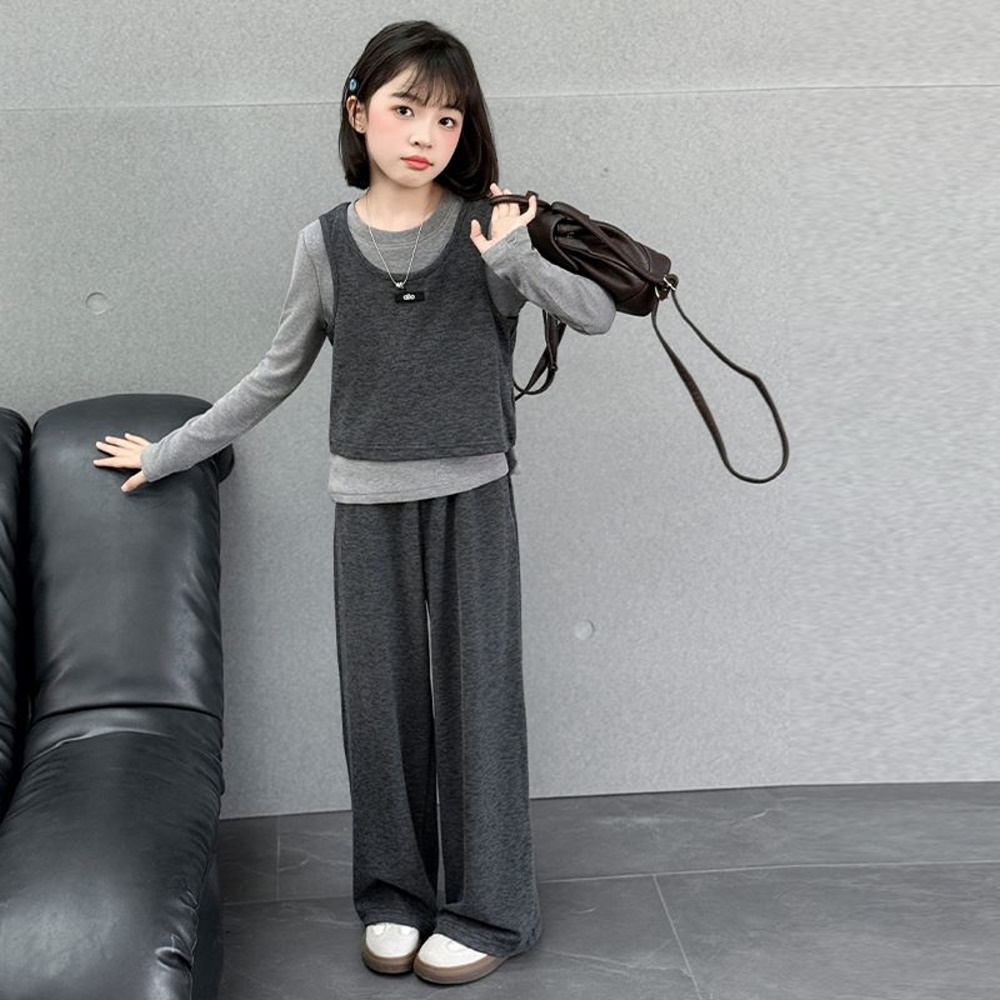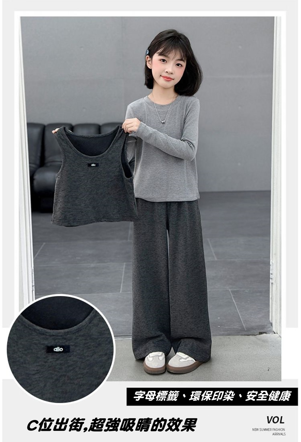 【小衣衫童裝】中大女童秋款三件式休閒背心長袖長褲套裝(1140823)